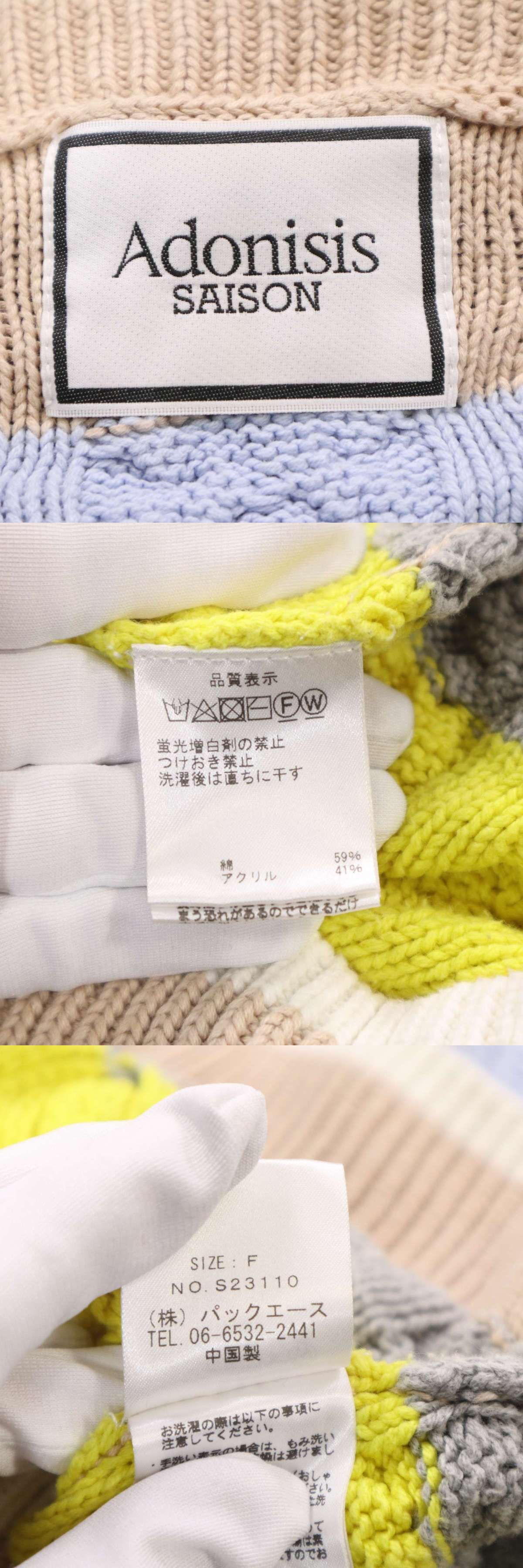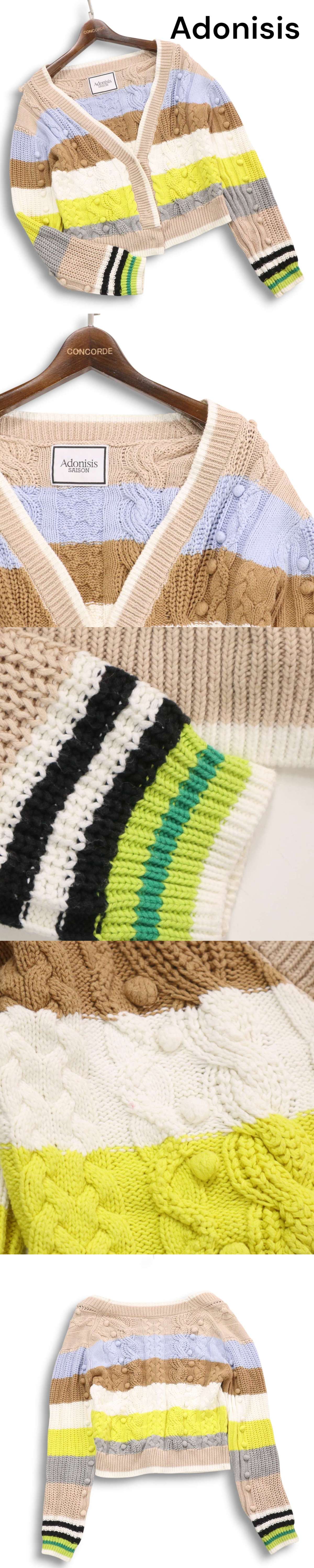 Adonisis SAISON アドニシス セゾン 秋冬 ポンポン♪ レインボー ケーブル ニット カーディガン Sz.F レディース 收藏