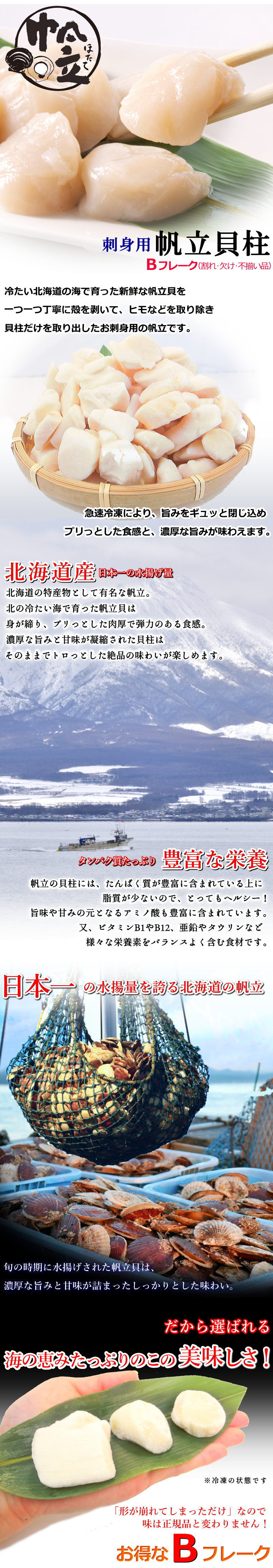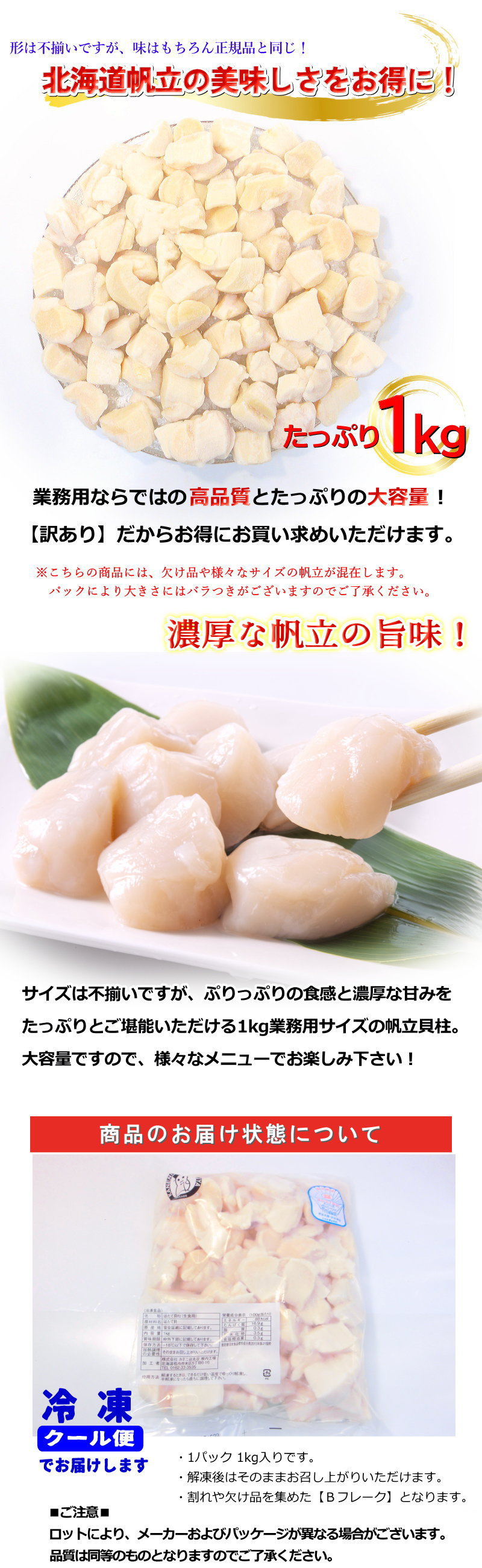 【Max】生食用 帆立貝柱 1kg 訳あり Bフレーク 北海道産 ホタテ貝柱 刺身用 バラ凍結 ほたて 帆立 收藏