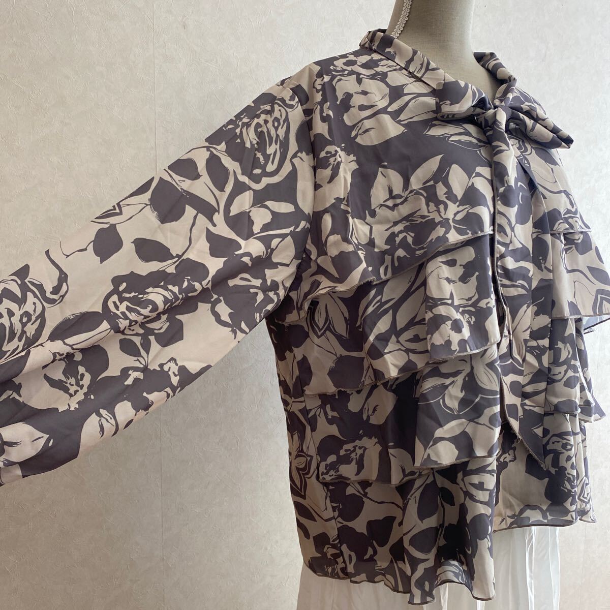 KN2348 *5L 大きいサイズ ボウタイ使い ティアードプリントブラウス 收藏