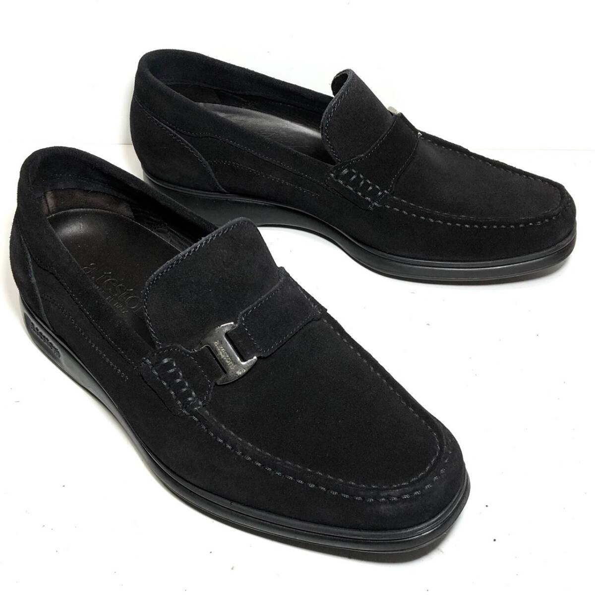 a.testoni 6 メンズ 黒 ブラック スリッポン スエード ア・テストーニ 革靴 レザーシューズ 本革 ■保管1610 收藏