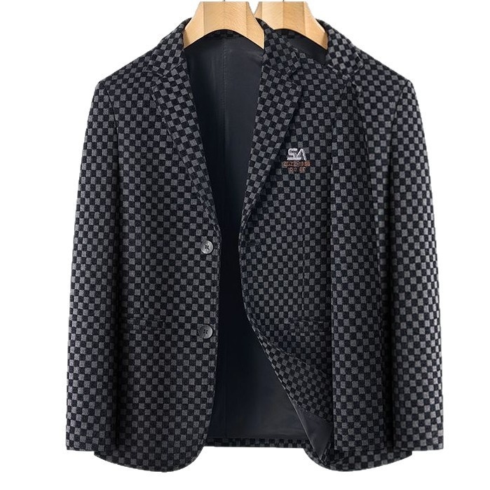 テーラードジャケット チェック柄 メンズ*新品 スーツジャケット カジュアル アウター ブレザー 秋服冬服【ZL 6M6301】黒 3XL 收藏