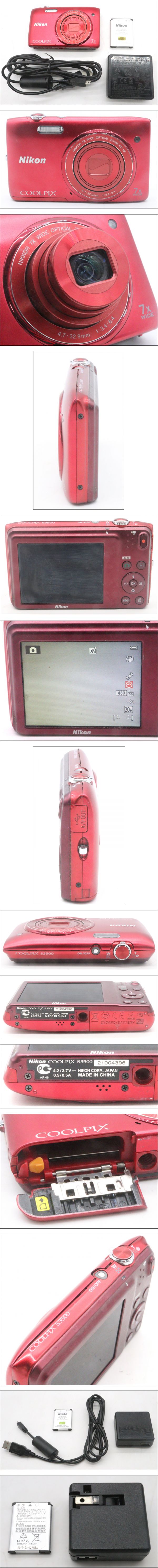 【ト足】Nikon ニコン COOLPIX S3500 本体 バッテリー 充電器 レッド コンパクトデジタルカメラ デジタル機器 CM744CSS04 收藏