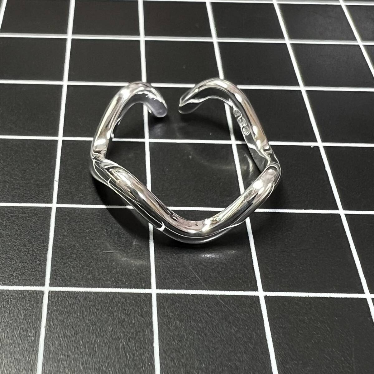 A409 指輪 レディース メンズ シルバー s925 リング 曲線 シンプル フリーサイズ サイズ調節可能 ジグザク 收藏