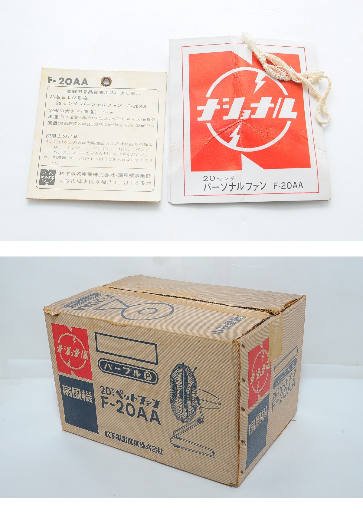 [MBL10]動作品 National ナショナル F-20AA パーソナルファン 扇風機 20センチ 3枚羽根 松下電器 松下精工 箱付き 電化製品 昭和 レトロ 收藏