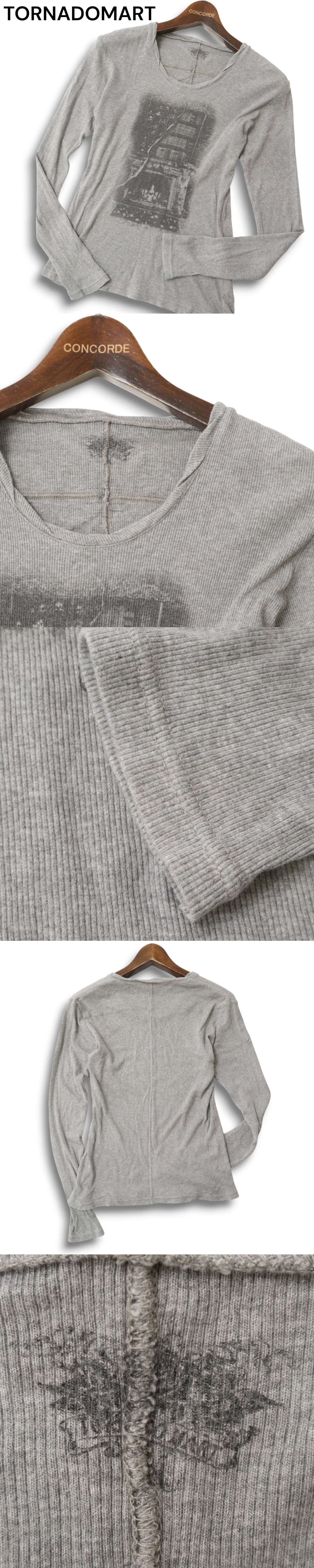 TORNADOMART トルネードマート 通年★ プリント リブ 長袖 カットソー ロンTシャツ Sz.S〜M位 メンズ グレー 日本製 收藏