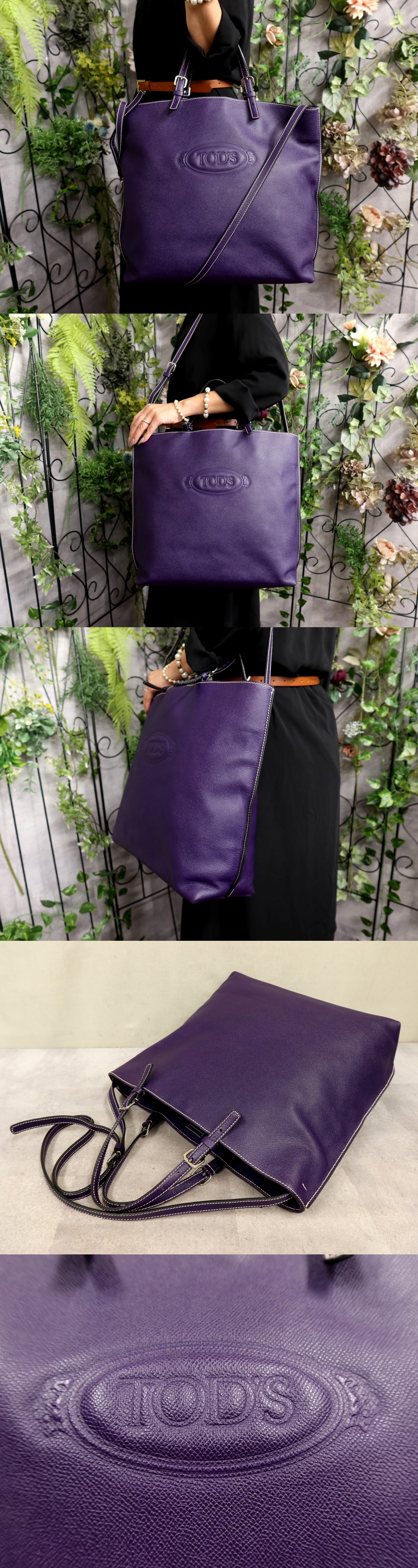 ●超美品●TODS トッズ●ロゴ型押し●ステッチ●カーフ レザー 本革●2way トート ハンド バッグ●パープル●シルバー金具●A4●Js61217 收藏