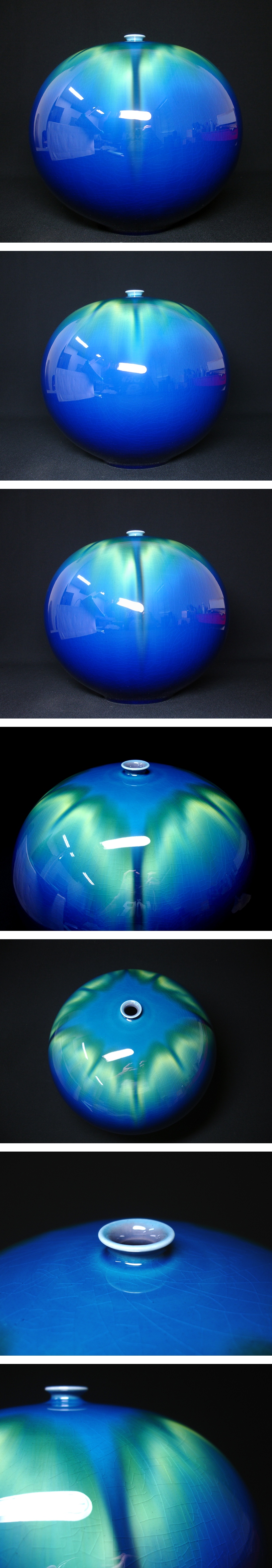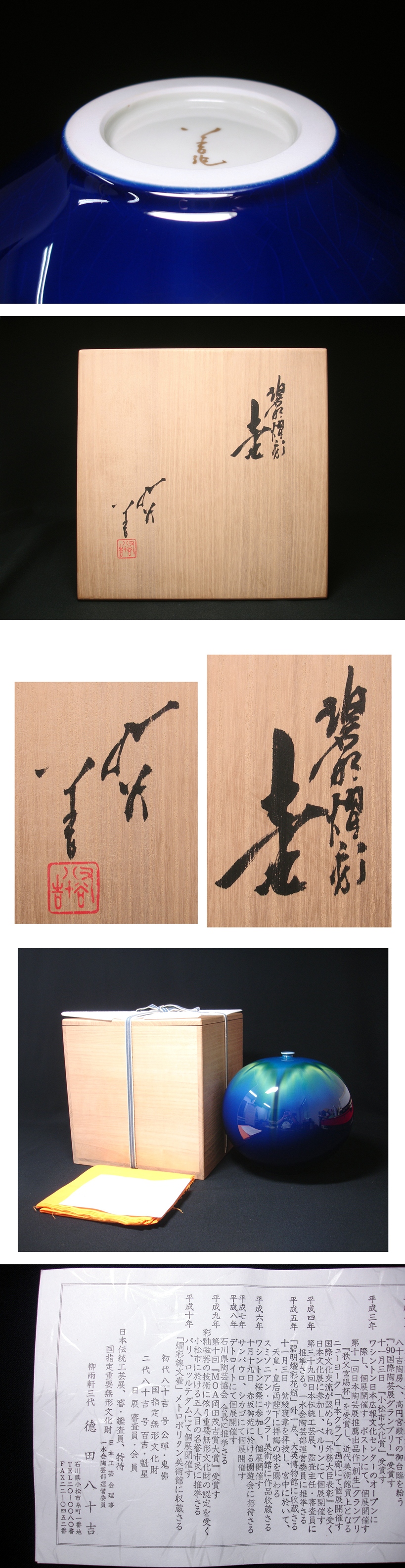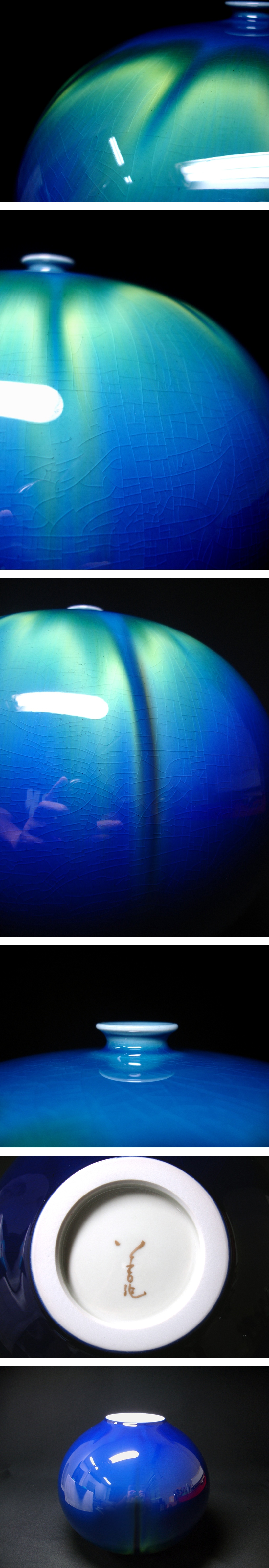 慶應◆人間国宝【三代徳田八十吉】晩年の秀逸作 碧明燿彩 壷 金文字銘 状態も抜群に綺麗です 共箱付 收藏