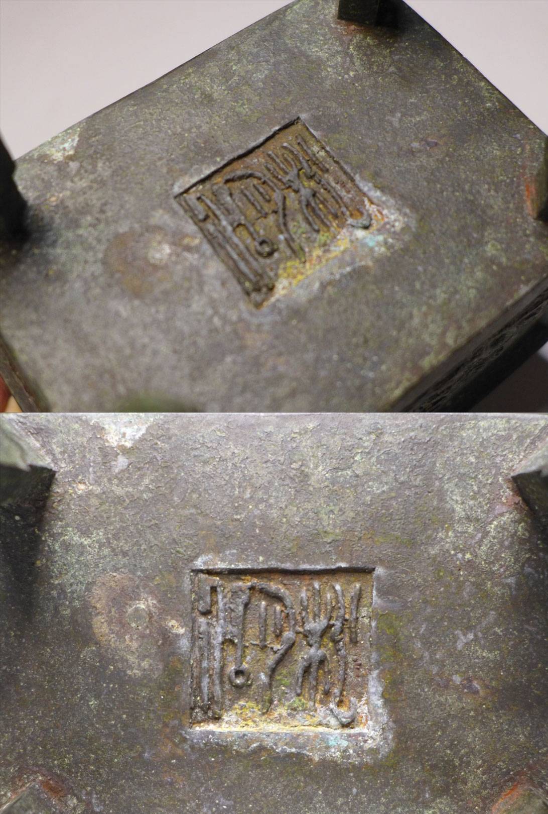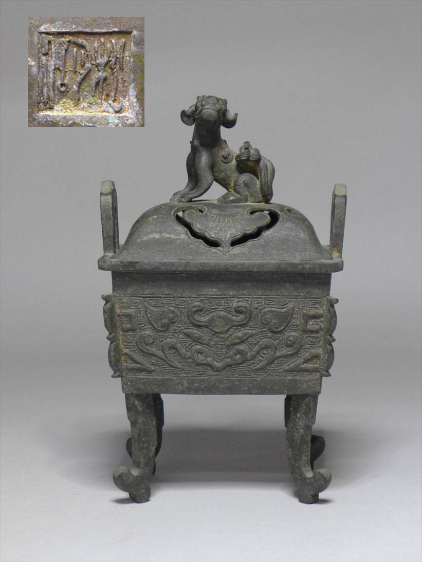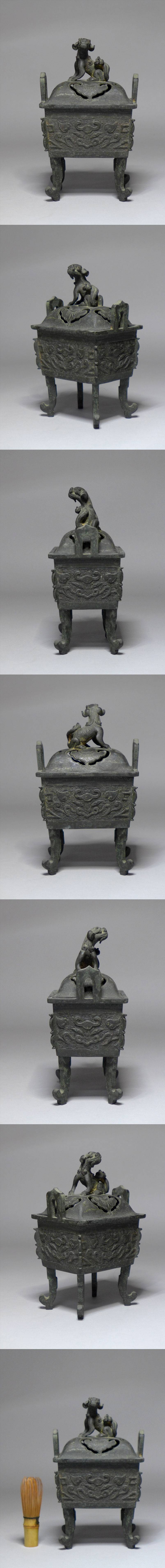 中国古玩 唐物 在銘 饕餮文鼎型獅子蓋香炉 検/銅器宣徳 收藏