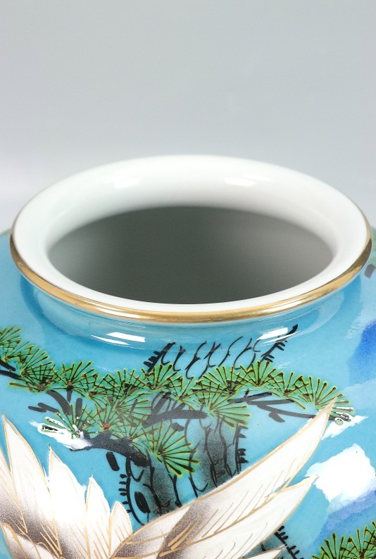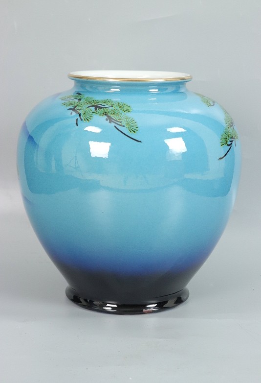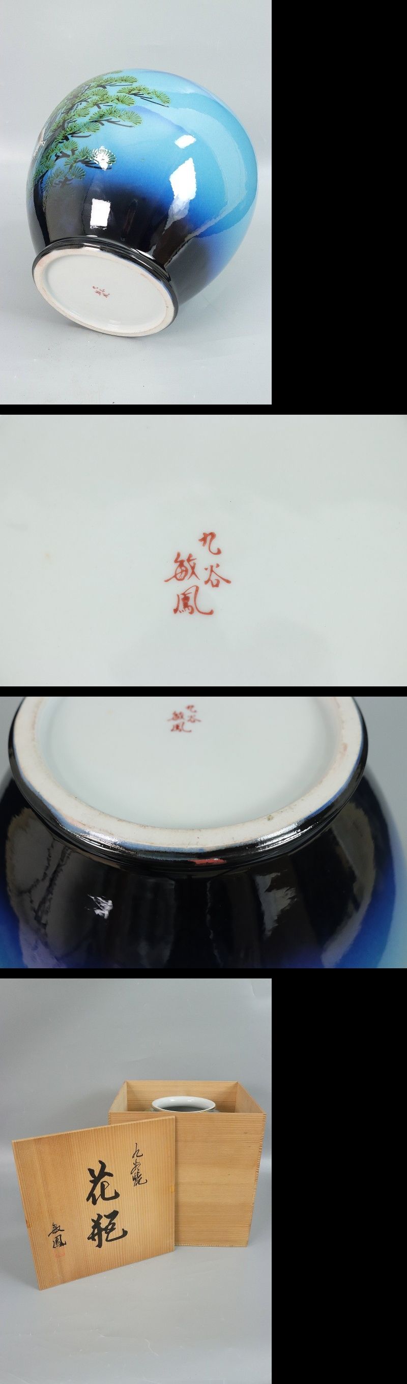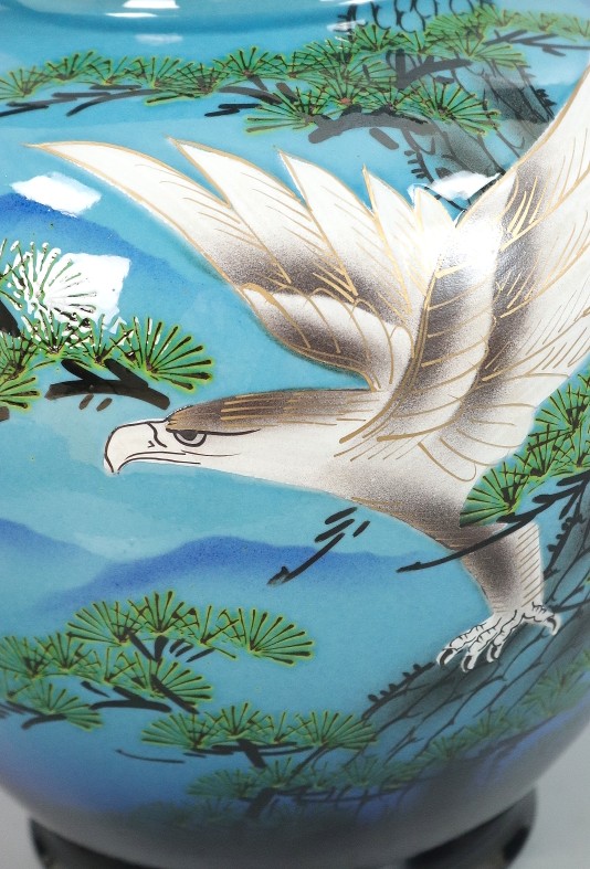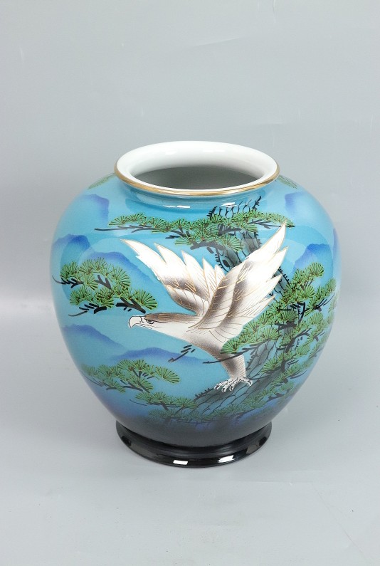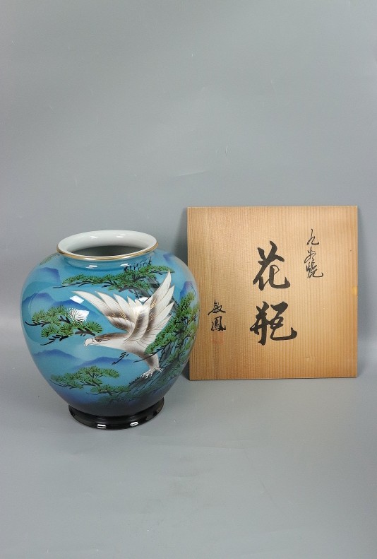 11144■敏鳳 花瓶 松に鷹 共箱 九谷焼 壺 花入 收藏