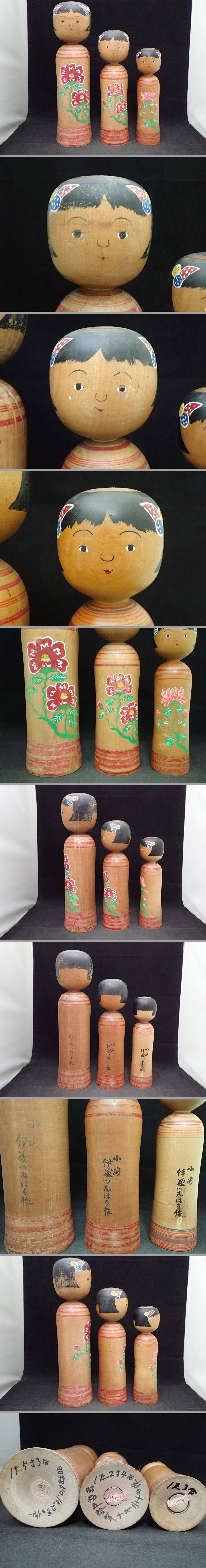 O48☆伝統こけし 伊藤つねはる 伊藤常治 木地山系 3点 約46.5・37.5・31.5cm まとめて 検) 郷土玩具 民芸品 工藝 小芥子 木芥子 (120) 收藏