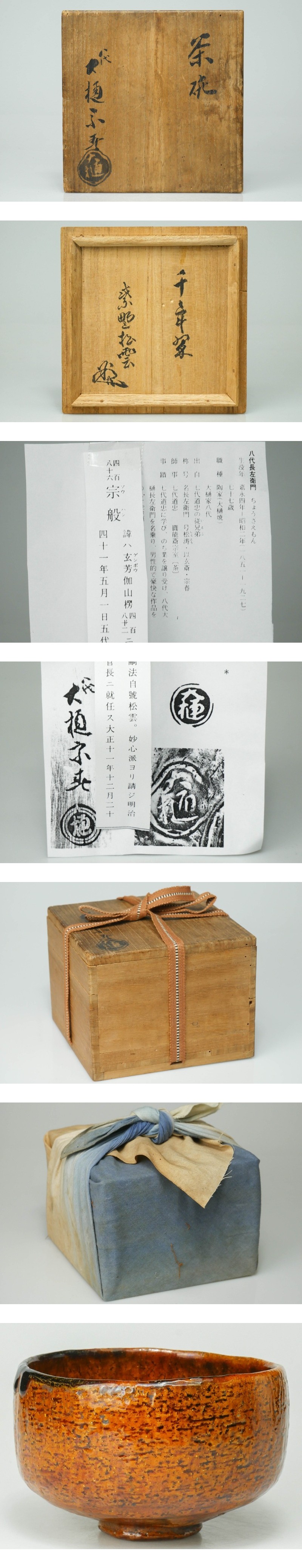 【 幸 茶匠の蔵 】秀作!『八代大樋長左衛門(宗春)』造 飴 茶碗 銘「千年翠」大徳寺管長 松雲箱 共箱◆当店保証 茶道具『茶人の言葉』 收藏