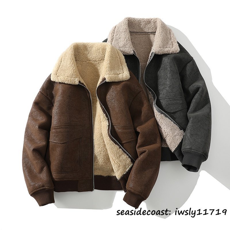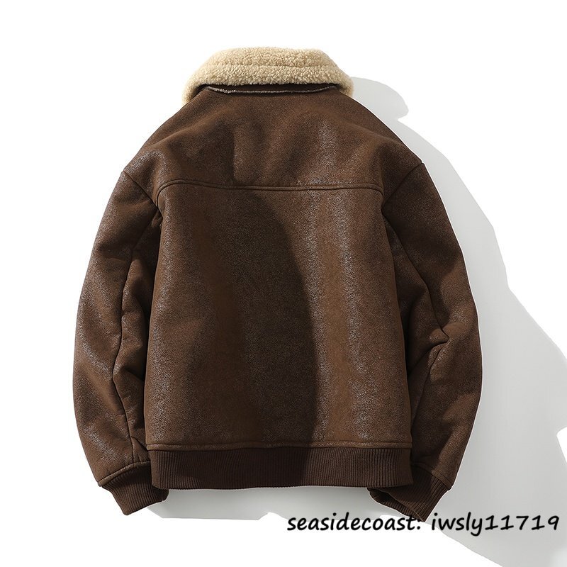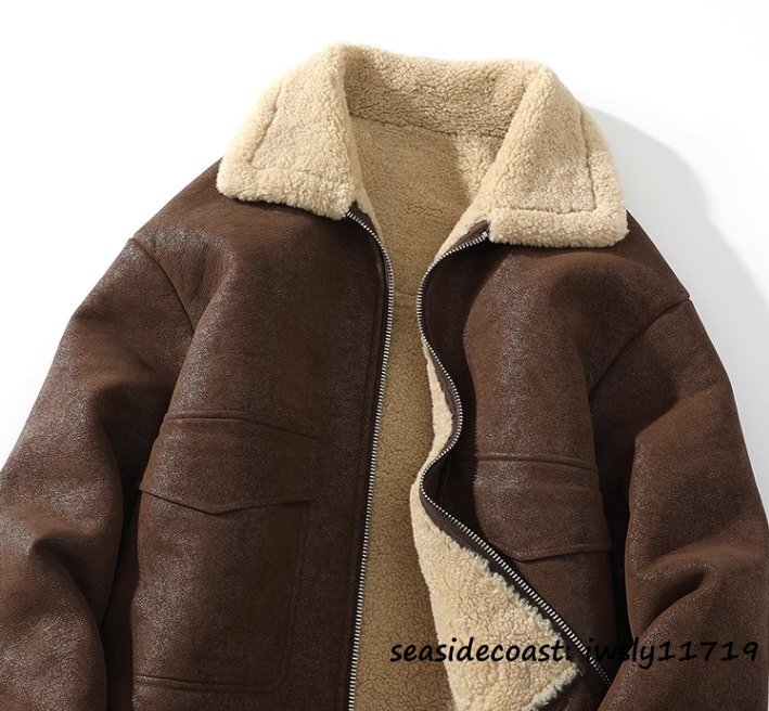入手困難◆上品 ムートンコート メンズ フライトジャケット 超防寒 裏ボア 厚手 ライダース 毛皮 ファーコート バイクウエア 珈琲色 XL 收藏