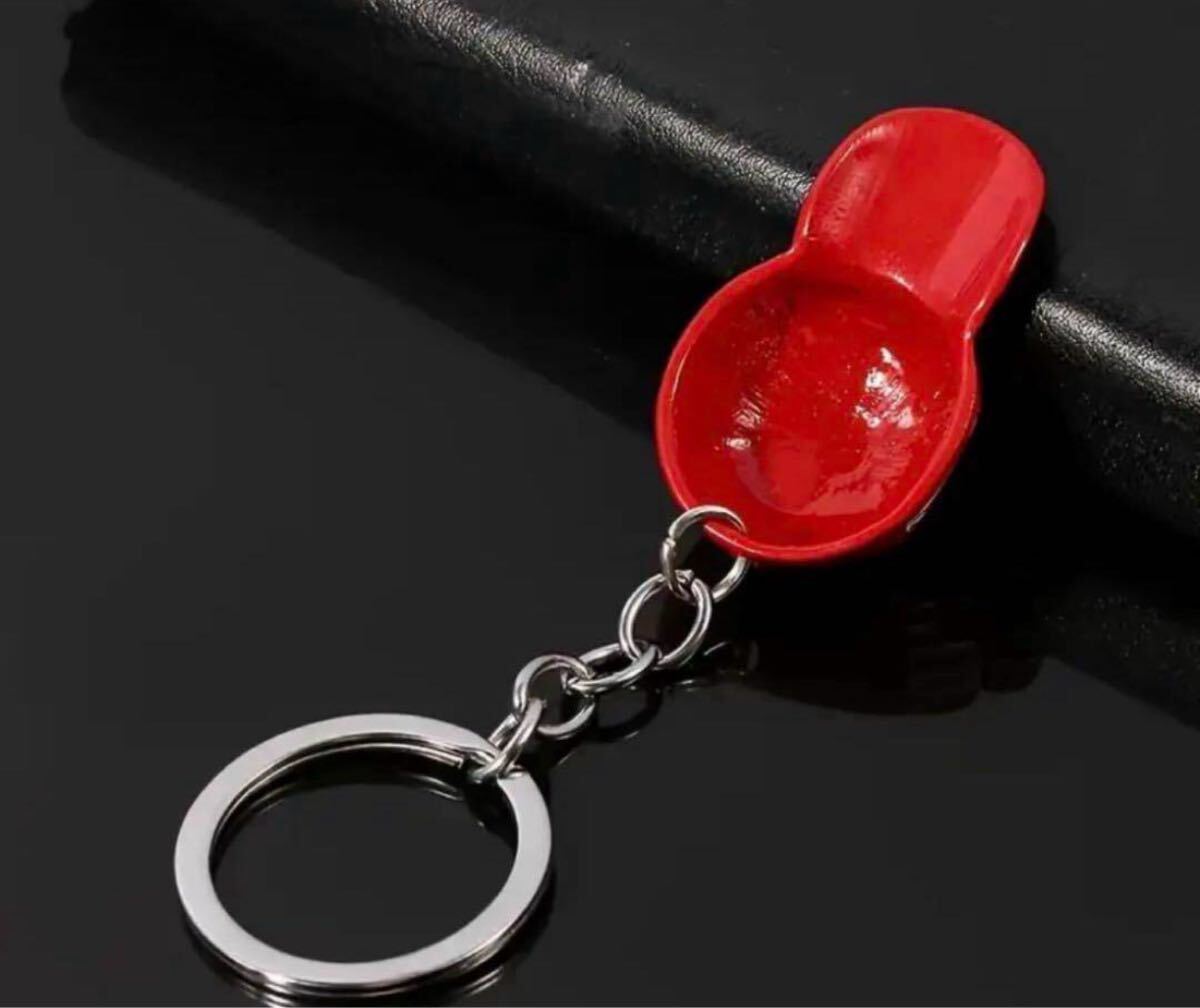 思わず話題になる赤キャップ型の面白キーホルダー。