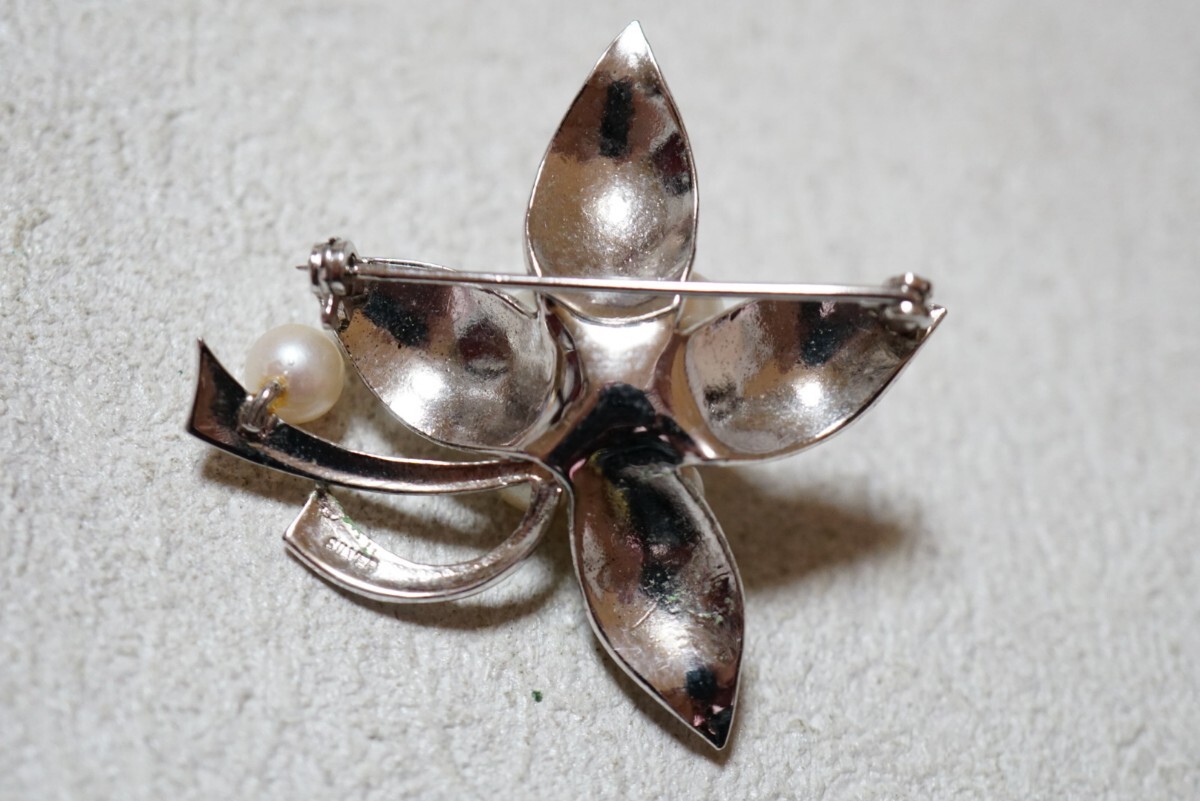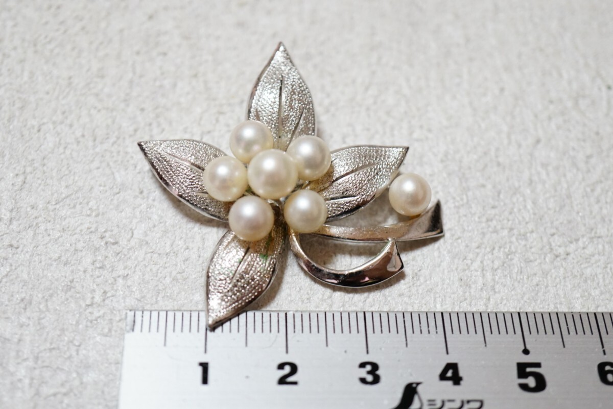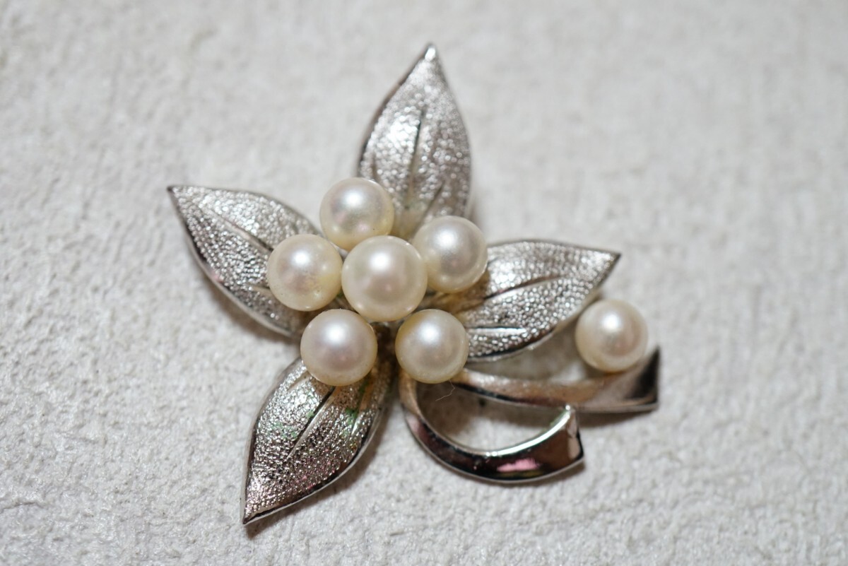 1527 アコヤ真珠 本真珠 パール シルバー ブローチ ヴィンテージ アクセサリー SILVER刻印 冠婚葬祭 あこや 装飾品 收藏