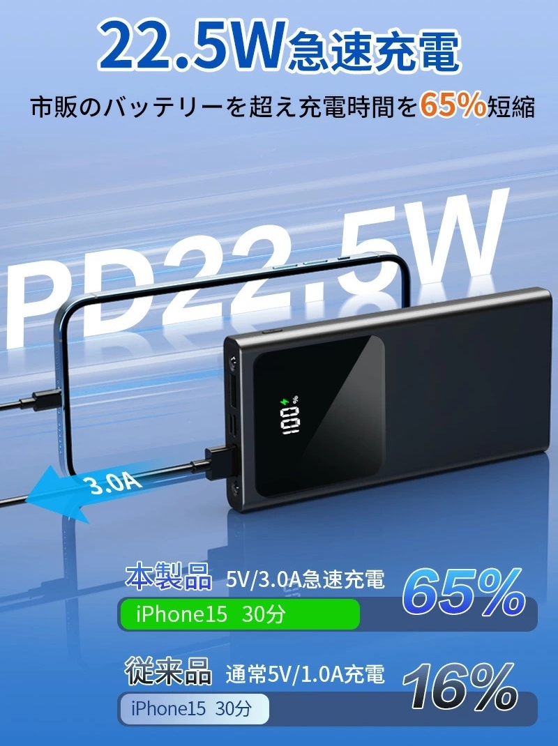 【送料無料】○モバイルバッテリー 30000mAh 大容量 急速充電 3台同時充電 LCD残量表示 LEDライト付 TypeC入力 PSE認証(新品・未使用) 收藏