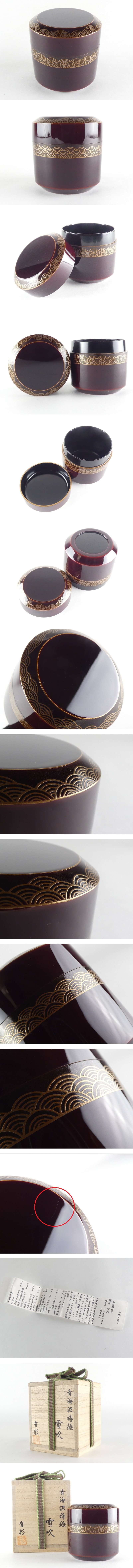 【都屋】塚本有彩「青海波蒔絵 雪吹」茶道具 共箱 高さ 約7cm 溜塗 1030 R103 收藏