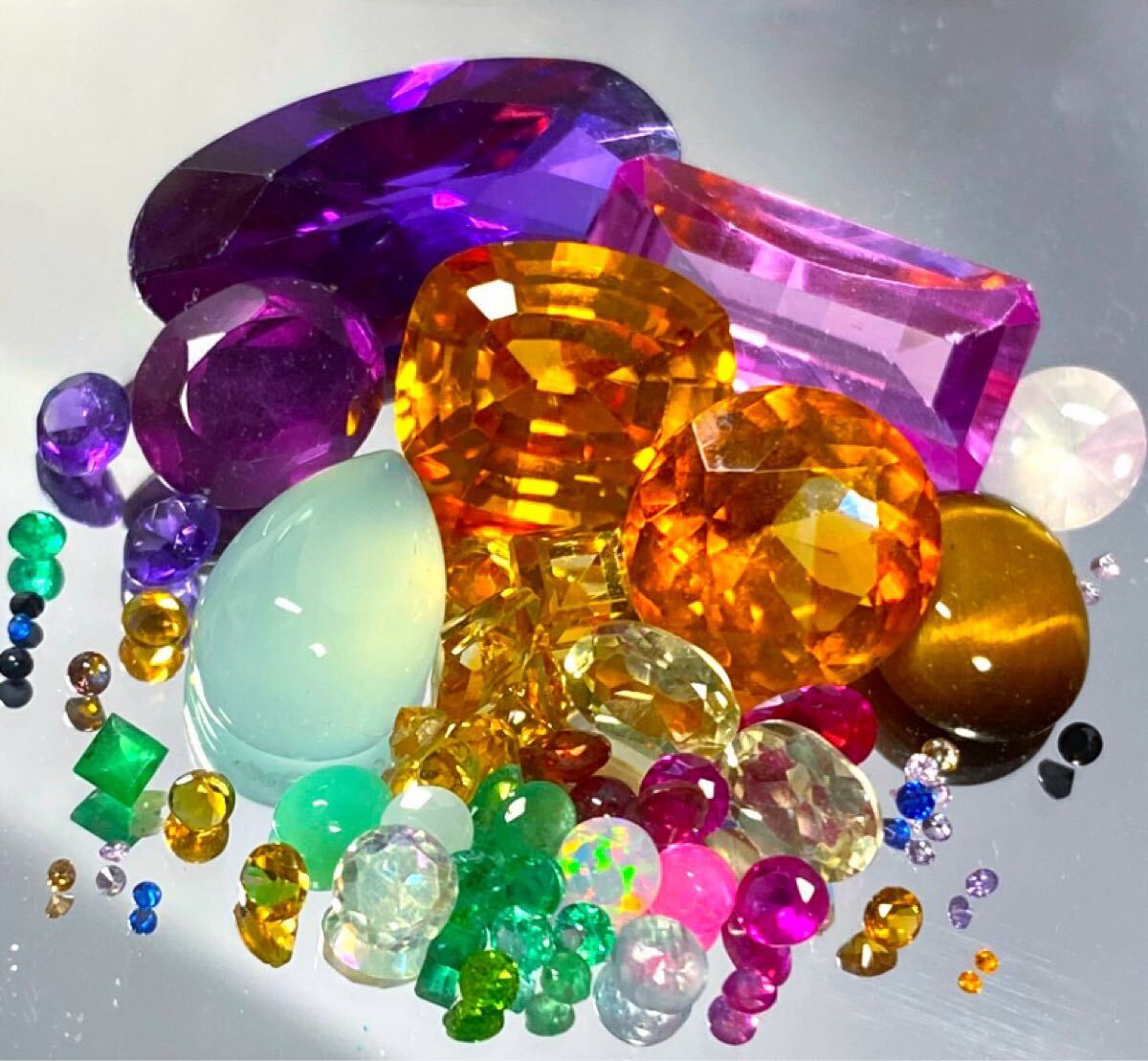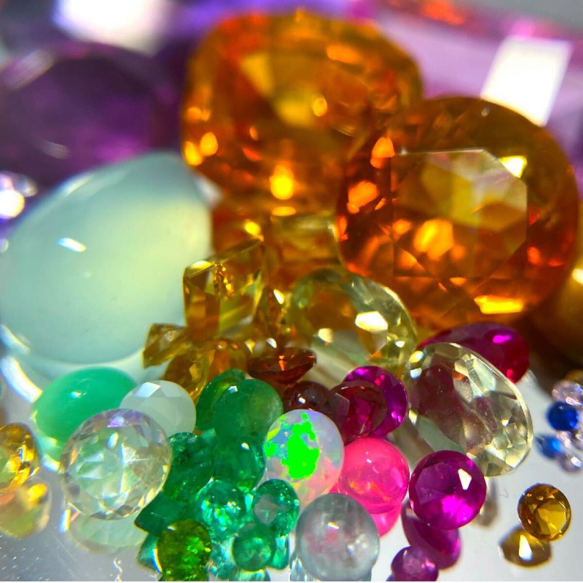 A3 ルース まとめ売り 大量セット 混ぜこぜ エメラルド オパール レモンクォーツ シトリン 他 天然石 宝石 裸石色石 人工石外し石 收藏