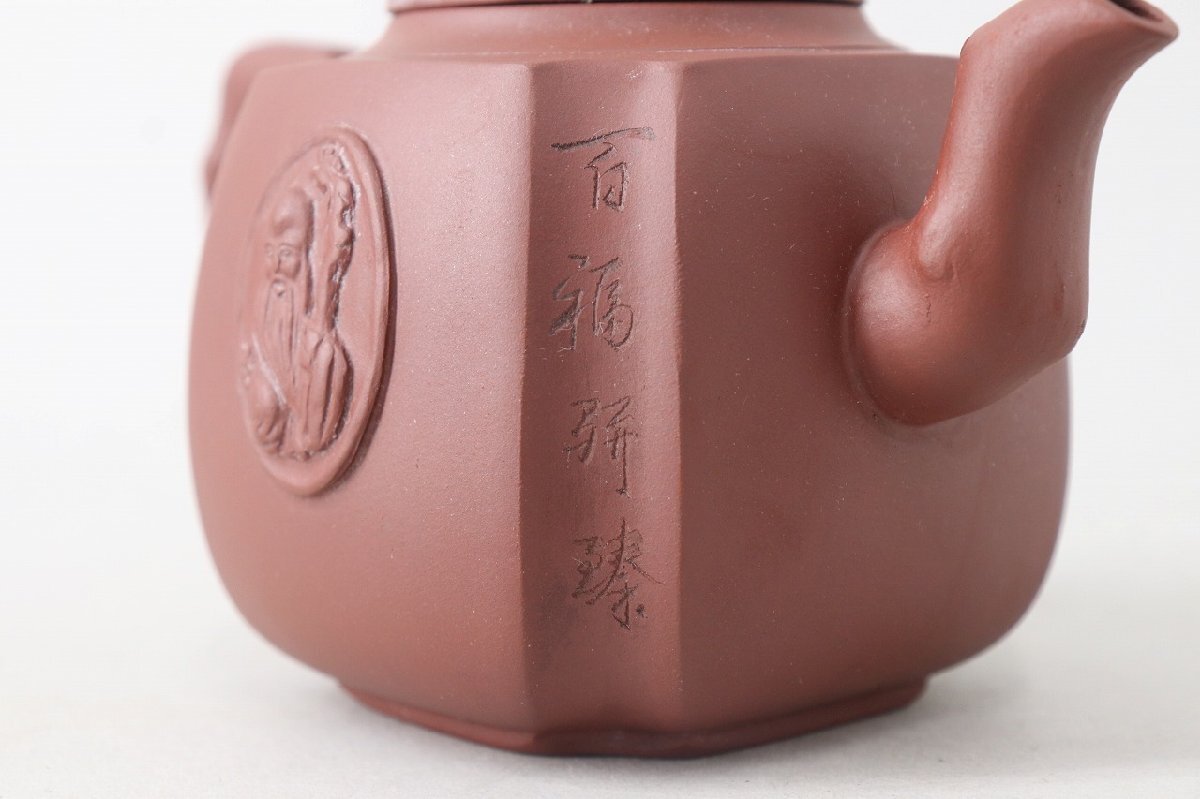 中国美術 徐永芳製 紫砂壺 寿老人 的祝福語 福如東海 寿比南山 百福駢臻 千祥雲集 10-C118 收藏
