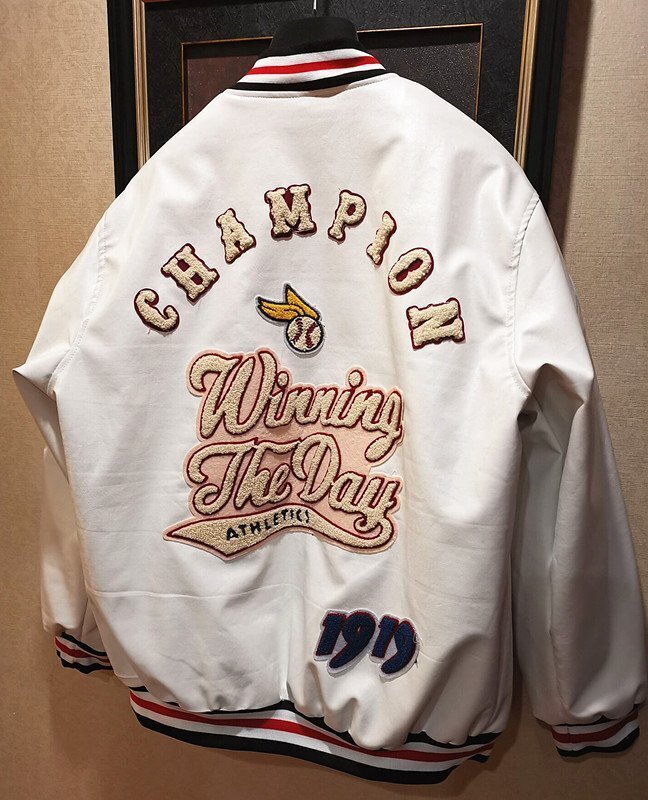最上級※定価13万◆イタリア・ミラノ発*BOLINI*高級PUラムスキン*重厚・防寒※ 可愛いワッペン ・スタジアムジャンパー48/L白 收藏