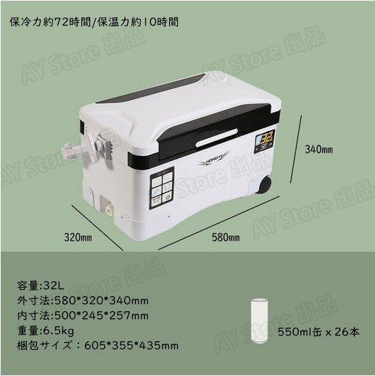 釣り用クーラーボックス 大容量32L 座れる頑丈マッスルボディ 防水 ハンドル/水栓/肩ベルト/キャスター付き 釣り 保冷力72h 白&黒 bhw0116 收藏