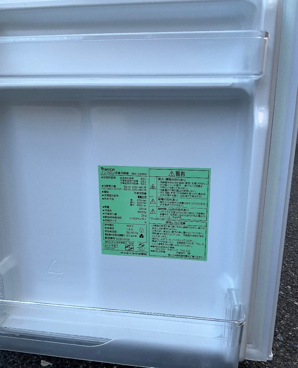 【RKGRE-562】特価!ヤマダ/90L 2ドア冷凍冷蔵庫/YRZ-C09B1/中古品/2018年製/店頭引取推奨商品/弊社近隣有料配達も可 收藏