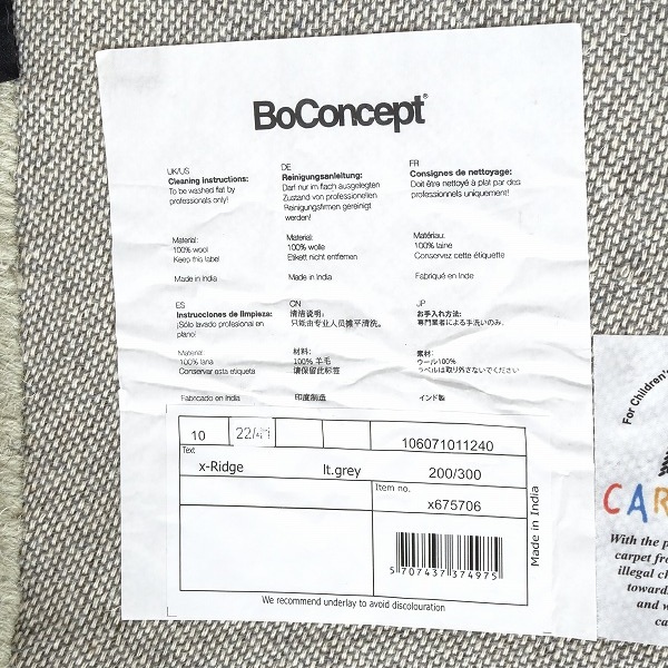 ★SELUNO★モデルハウス展示良品 BoConcept ボーコンセプト Ridge ラグ ラグマット 2000×3000 17万 #アクタスコンランウニコフクラ 收藏