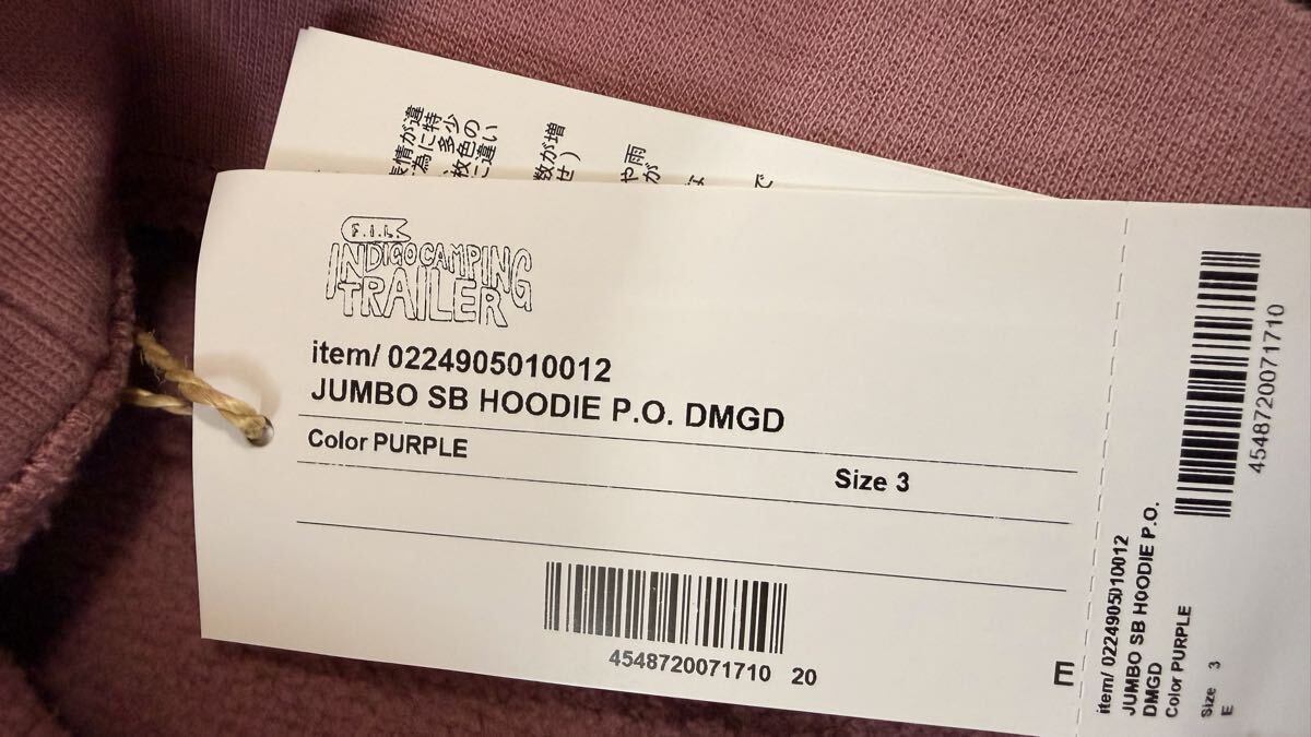 新品 visvim ICT JUMBO SB HOODIE P.O. DMGD Color PURPLE Size3
