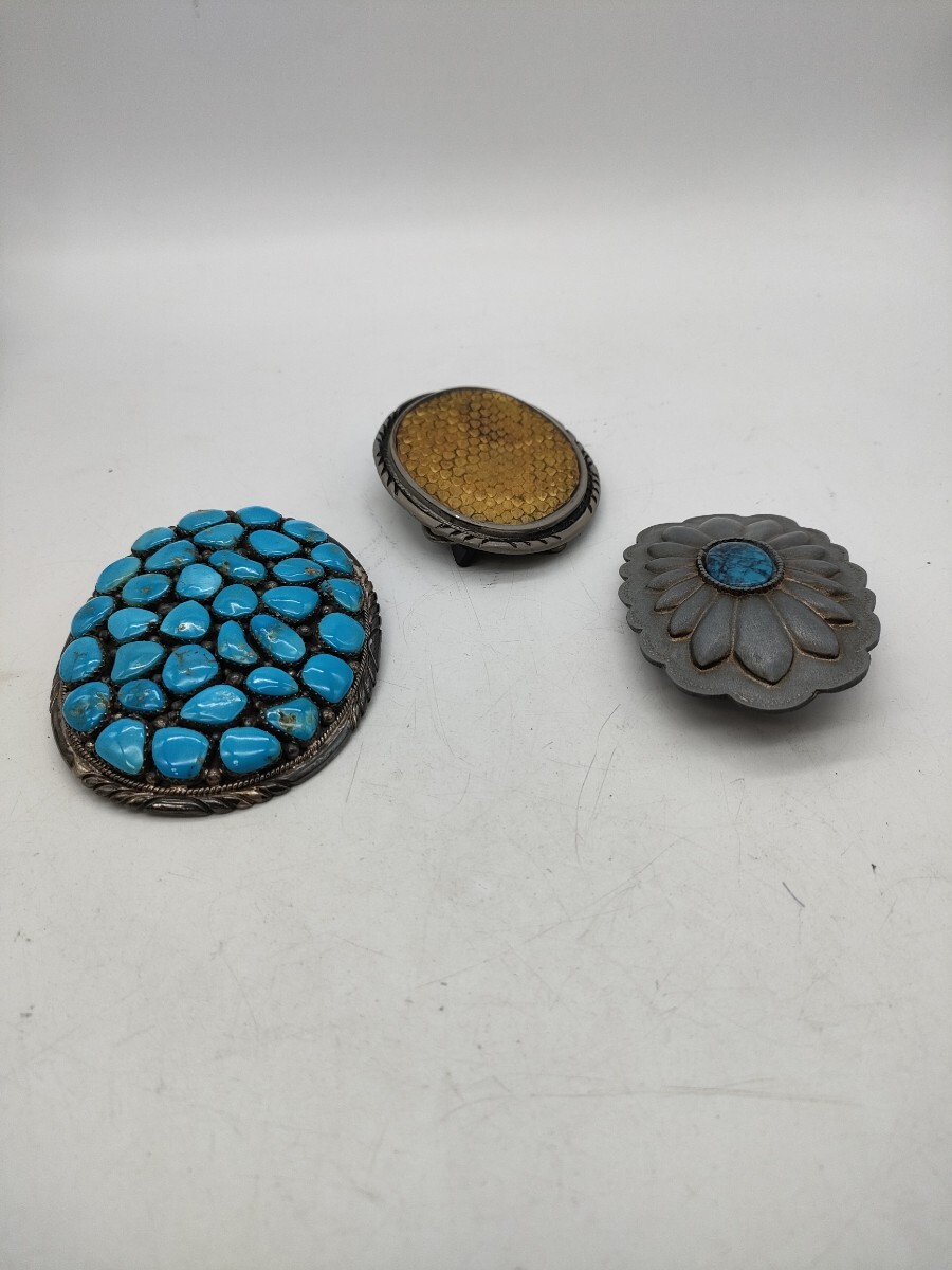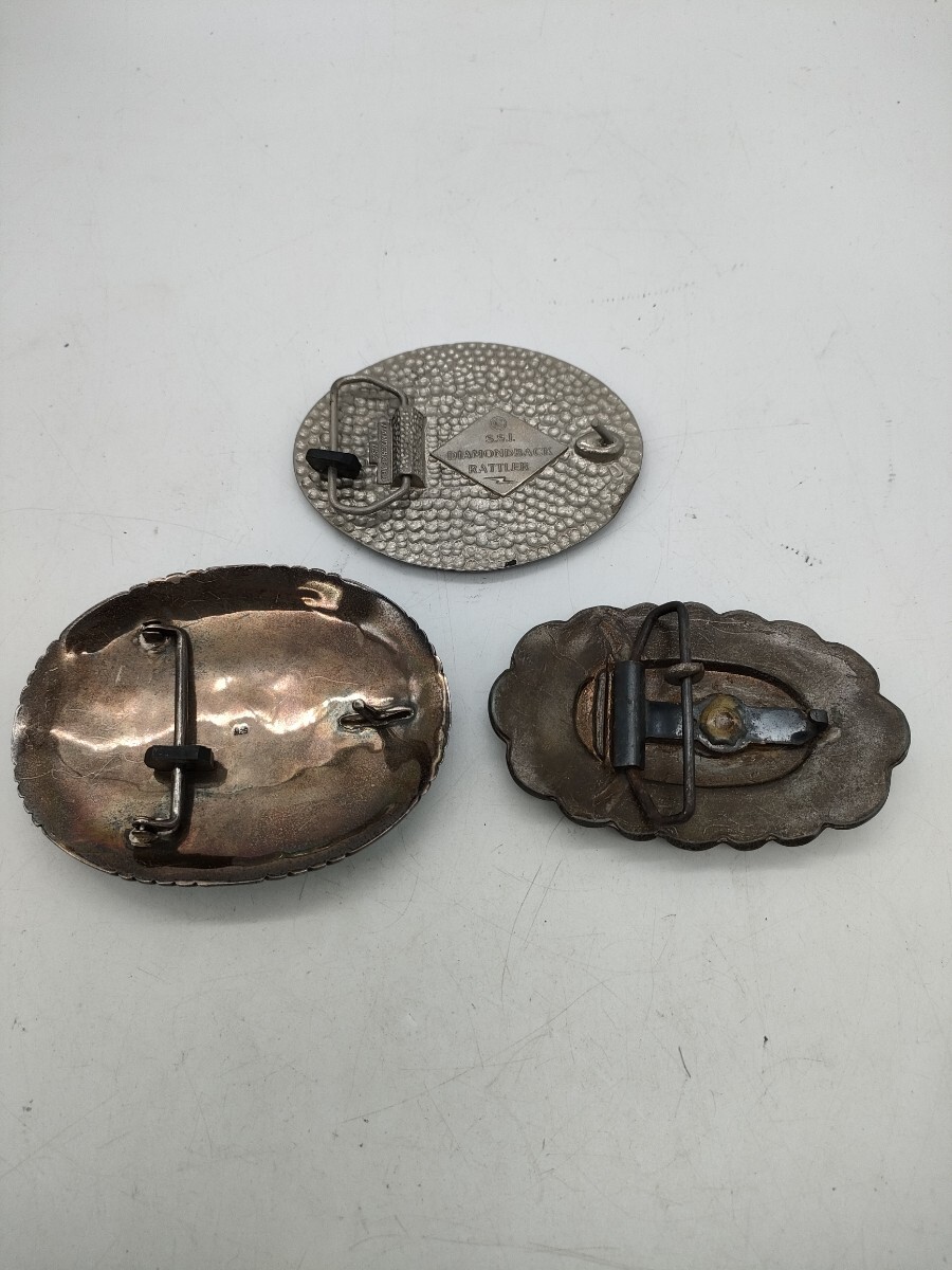 1円〜 ベルト バックル 3点おまとめ シルバー 925 SILVER含む ターコイズ トルコ石 DIAMONDBACK RATTLERなど アクセサリー 收藏