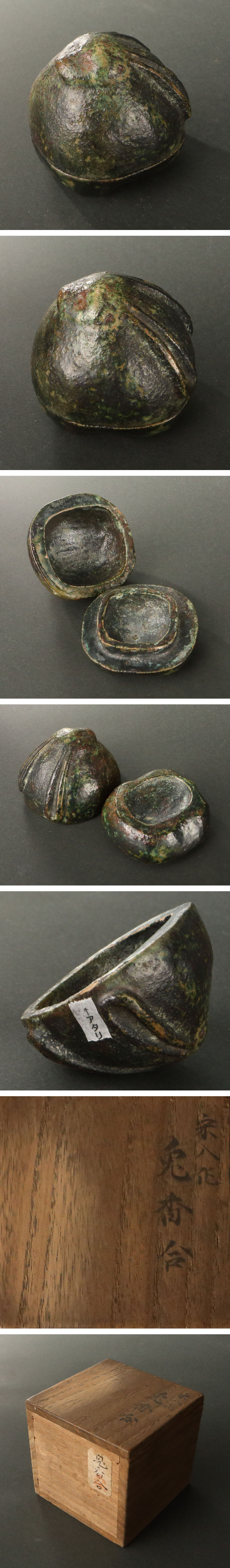 委託HK◇伝樂宗入 青釉兎香合(茶道具 陶磁器 陶芸 京焼 楽焼 緑 動物 兎 卯 干支 練香 炭点前 炉 正月 初釜 千家十職 樂家 古物 骨董) 收藏