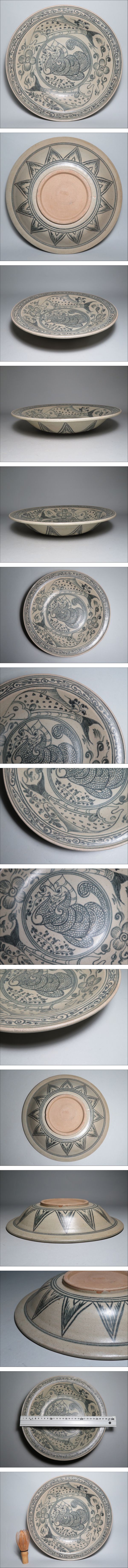 | 「都内コレクター所蔵品」ベトナム(越南)時代古陶 安南染付花魚文皿 安南焼 東南アジア古陶器 | ||