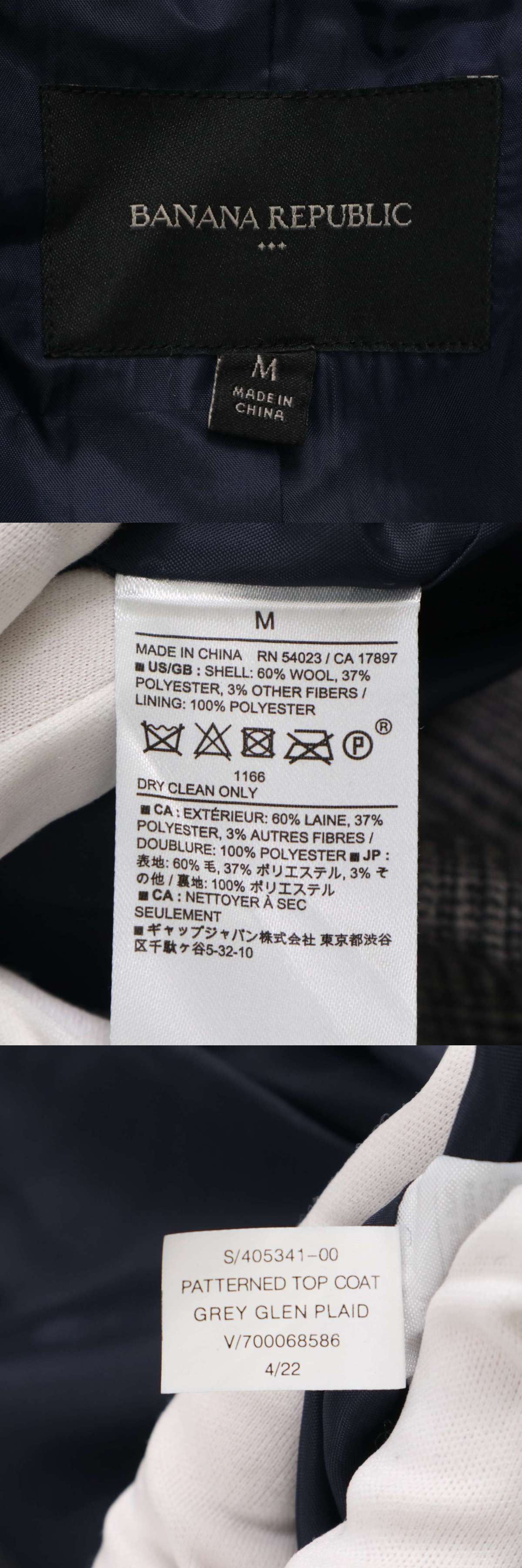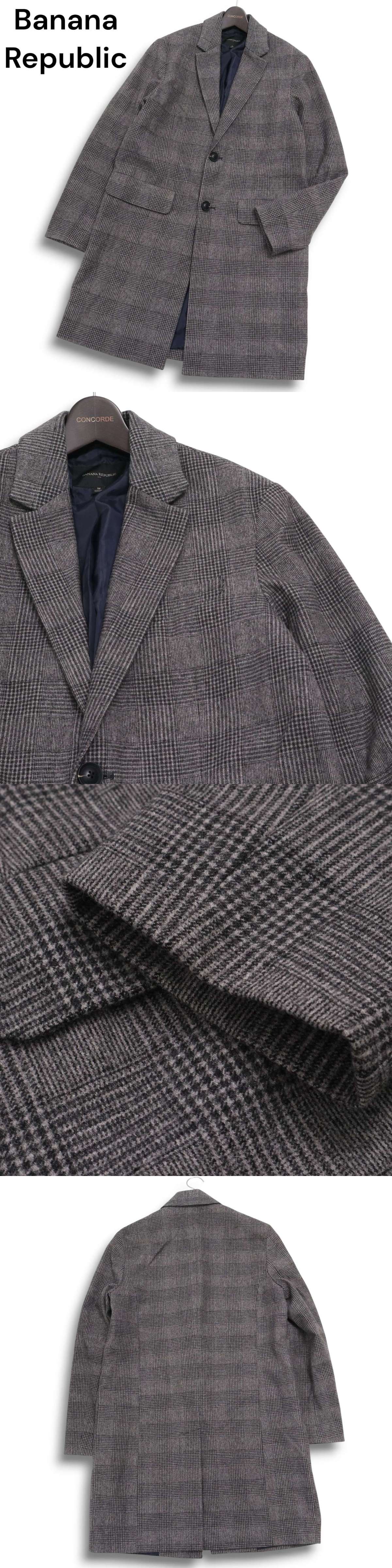 Banana Republic バナナリパブリック 秋冬 ウール混★ グレンチェック チェスター コート Sz.M メンズ 灰 グレー 收藏
