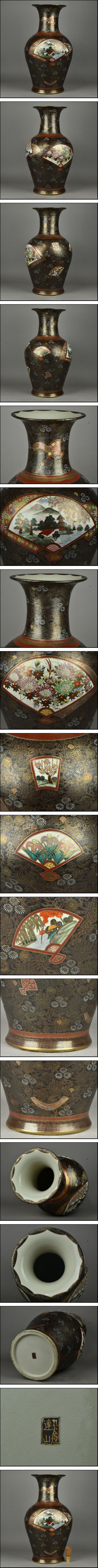 【NNK】九谷焼【九谷連山】金彩色絵 花尽扇図 大花瓶 花入 飾壷 高さ60.2cm D7-1104-5 收藏