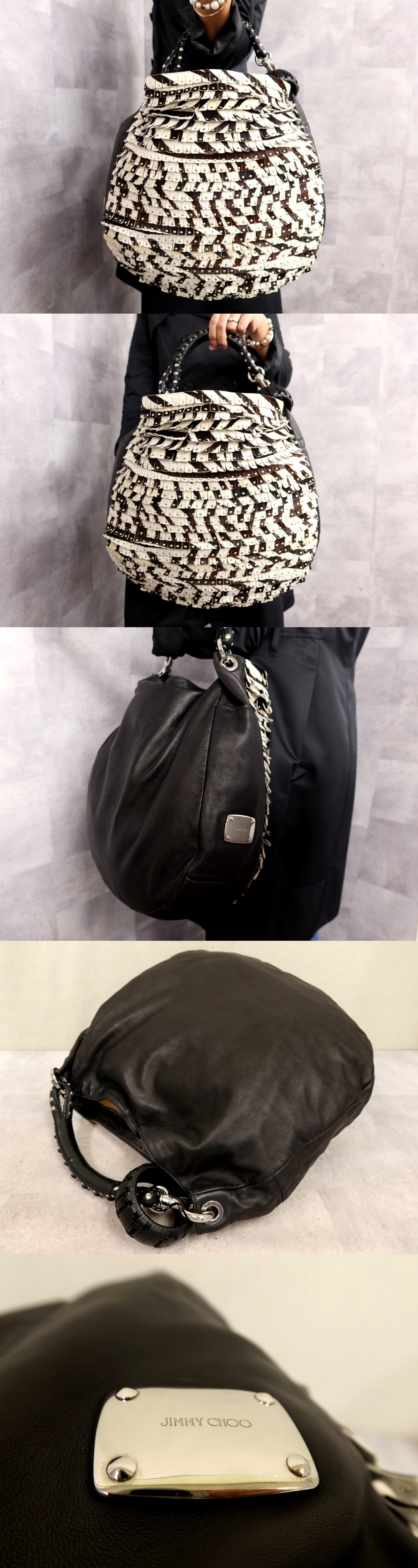 ●超美品●ジミーチュウ●スカイバッグ●スタッズ●ハラコ ラム レザー 本革●ハンド バッグ●黒 白 ブラウン●SV金具●A4 かばん●Js62306 收藏