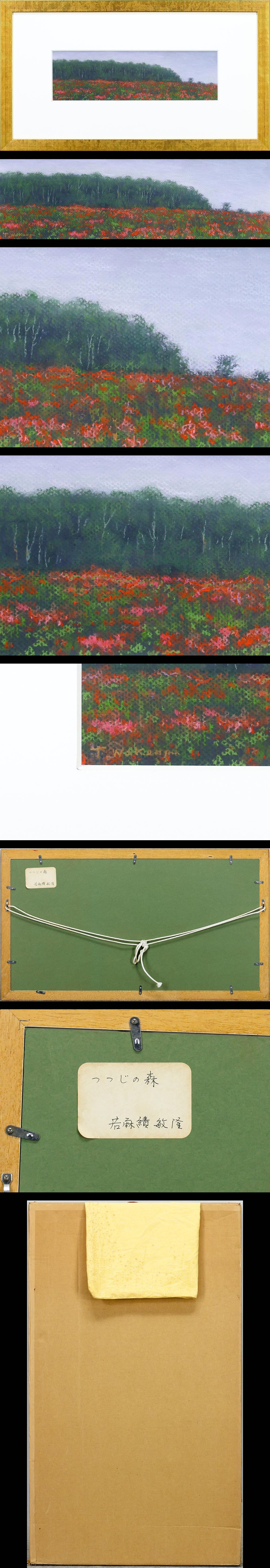【真作】【WISH】若麻績敏隆「つつじの森」パステル 約6号 ◆緑の木立と朱の花が奏でる季節の詩 〇日本画家・僧侶 #25103338 收藏
