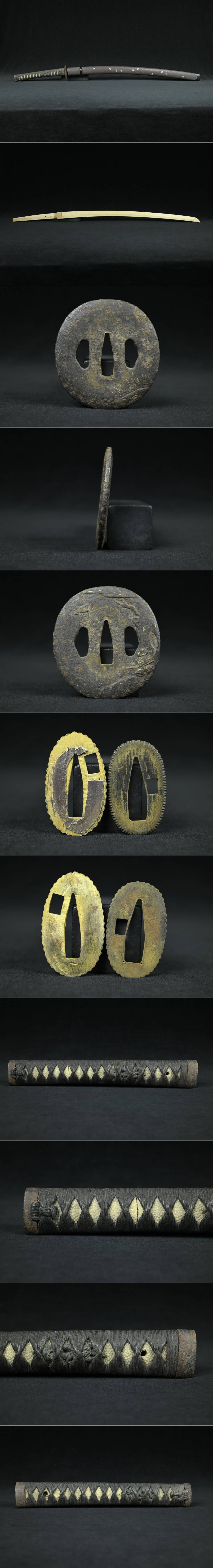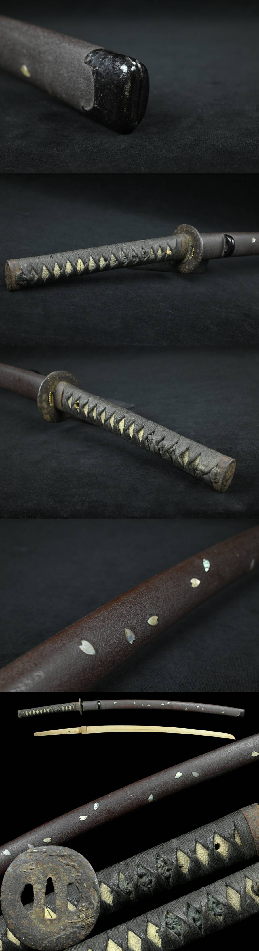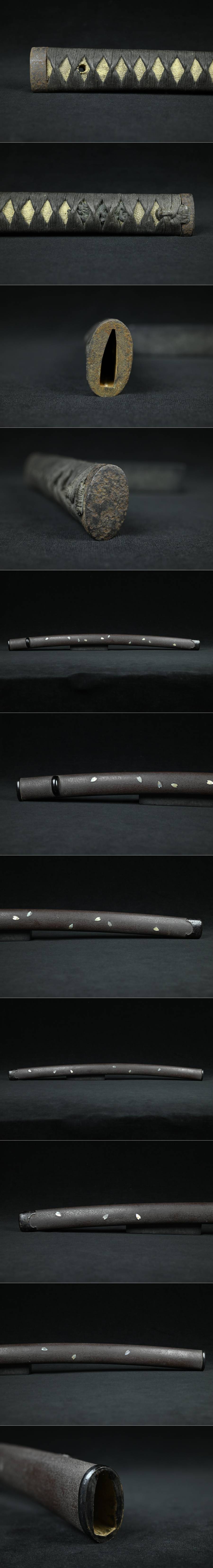 【昊】時代 龍図目貫 鮫皮巻柄 螺鈿花弁図鞘 外装拵え 刀装具[TN87Yr] 收藏