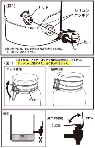 ・ドリンクを注ぐ際はワイヤーロックを解除状態にして下さい。ロックした状態ですと、注ぐことができません。