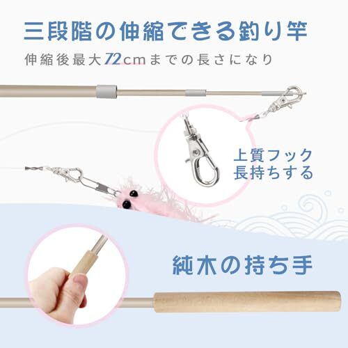 猫じゃらしの内容:6点交換用先端のおもちゃ+2釣りの糸+1釣り竿,合計9点ねこじゃらし。手軽な値段でお客様にコスパ最高の商品を提供することを目指しています。また、商品に何か問題があればいつでも気軽に連絡してください、最善なアフターサービスを提供いたします。
