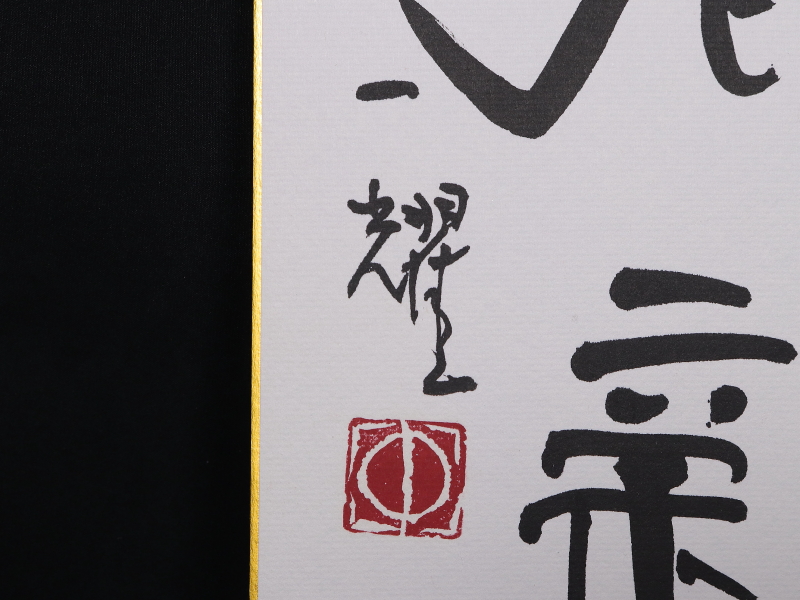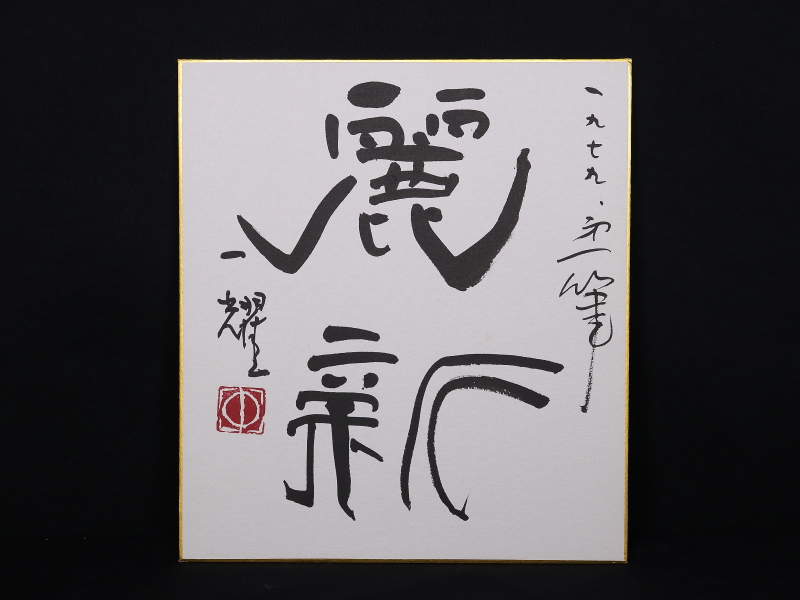 11712■【真作】中原一耀 書 「麗新」 色紙 肉筆 1979年第一筆 前衛書道家 毎日書道学会名誉会員 マクリ 收藏