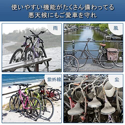 【強度あり・破れにくい】高密度のポリエステル生地を使用し、ビニール製の自転車カバーより5倍以上の強度があり、丈夫で破れにくく、耐久性あり、自転車カバーにちょうどいい厚さ、バイクカバーのように厚すぎず、着脱がしやすいサイクルカバーです。