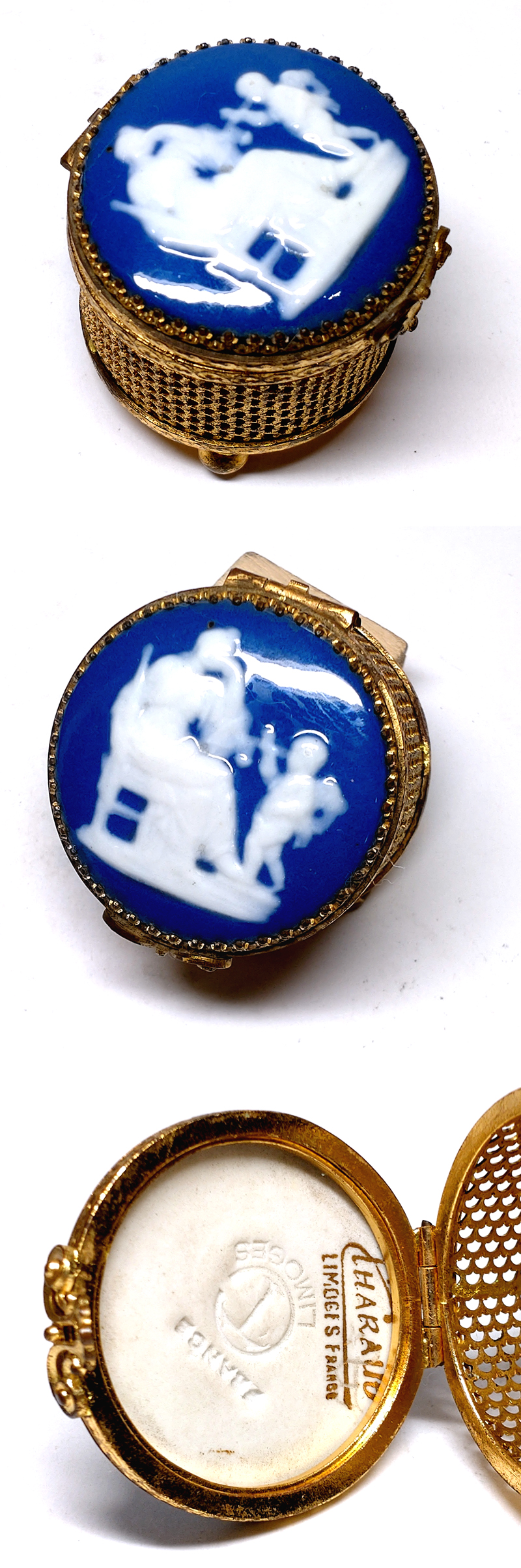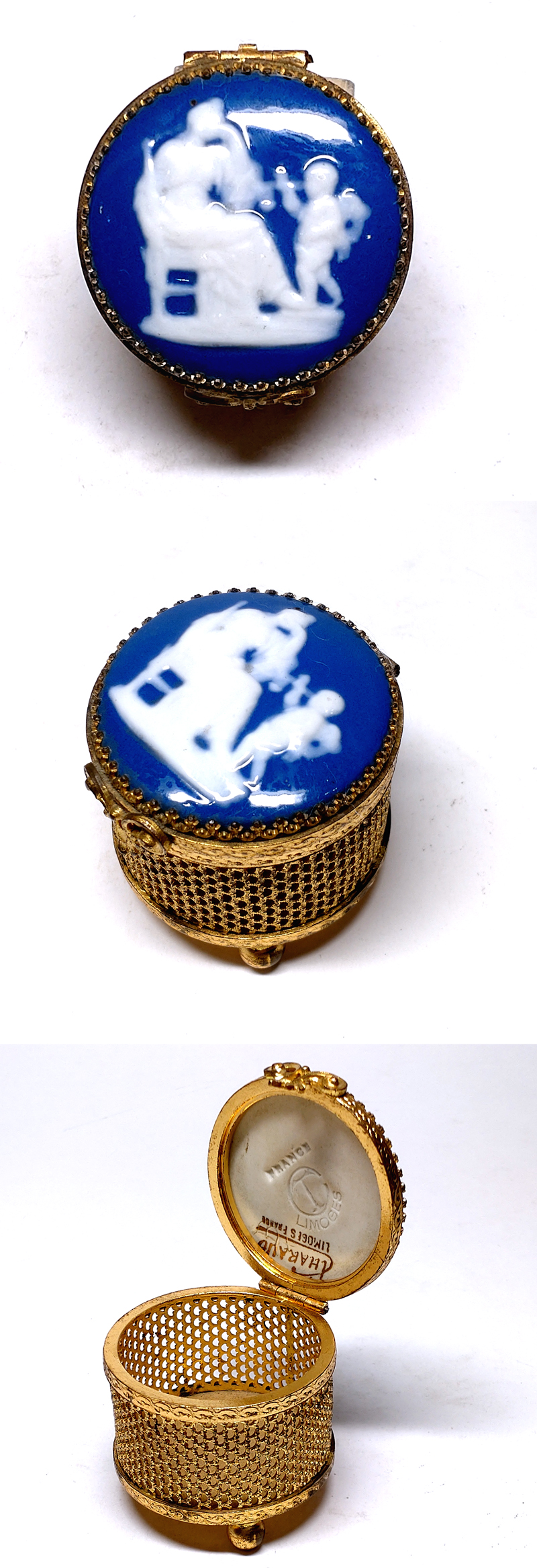 【侍】LIMOGES リモージュ フランス コバルト釉 Camille Tharaud カミラ タロー パテ シュール ジュエリーBOX 20+666 收藏