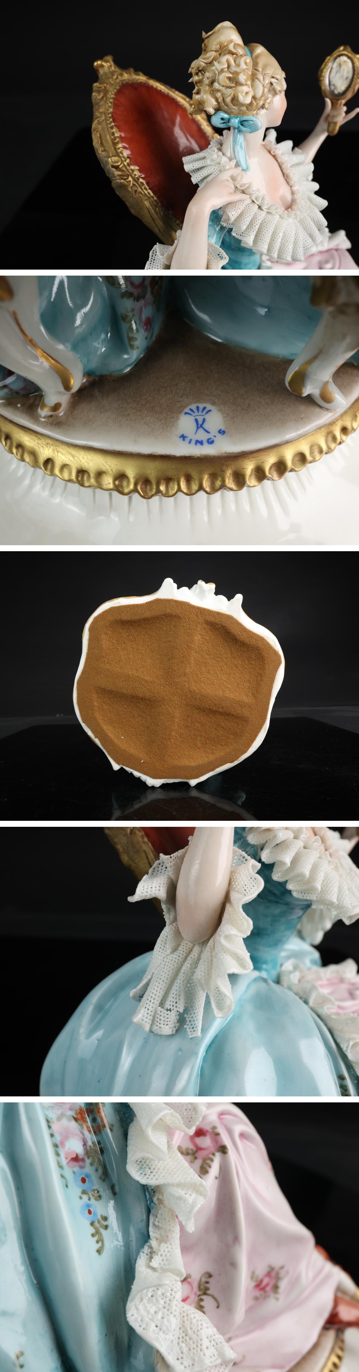 【志】A1400 貴族婦人 キングス KINGS 置物 陶器人形 西洋美術 イタリア製 フィギュリン 人形 # 收藏