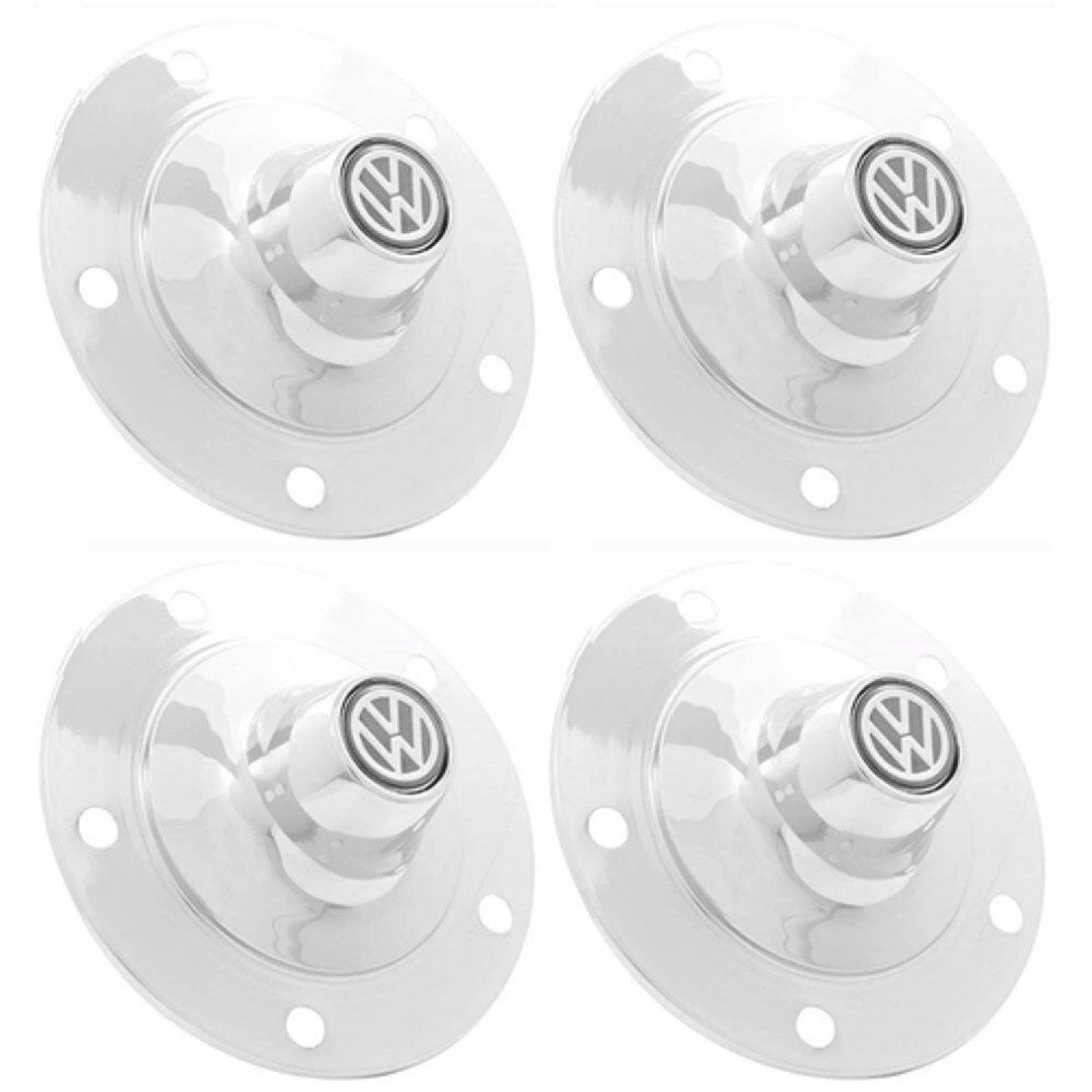 4個セット ハブ キャップ センター ホイール キャップ 5穴用 ラグ/穴 5LUG 旅行タイプ クロムメッキ スチール VW ブラック 黒いロゴ フォルクスワーゲン バグ バギー ビートル T1 T2 T3 T4 バス コンビ