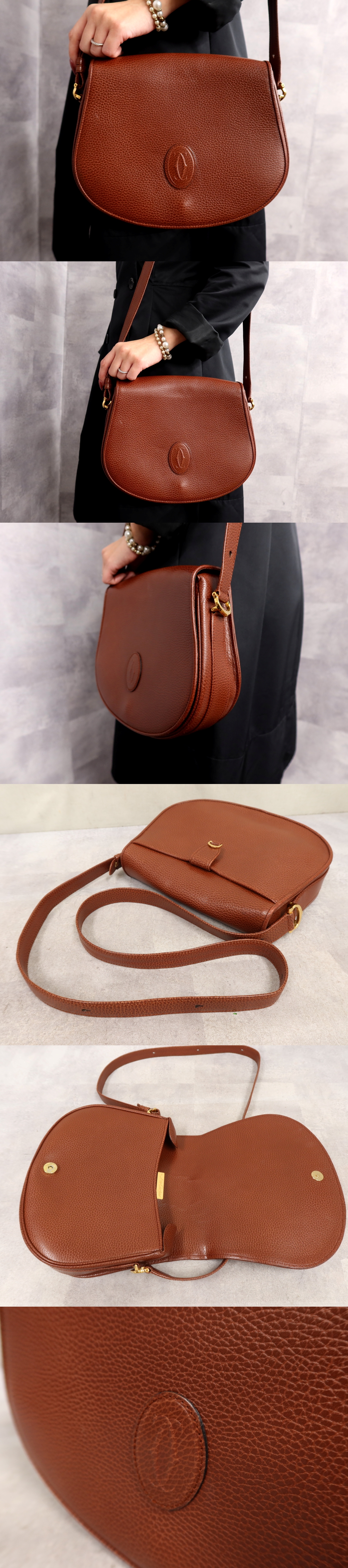●超美品●Cartier カルティエ●マスト●ロゴ型押し●フラップ●カーフ レザー 本革●ショルダー バッグ●ブラウン●ゴールド金具●Js63114 收藏