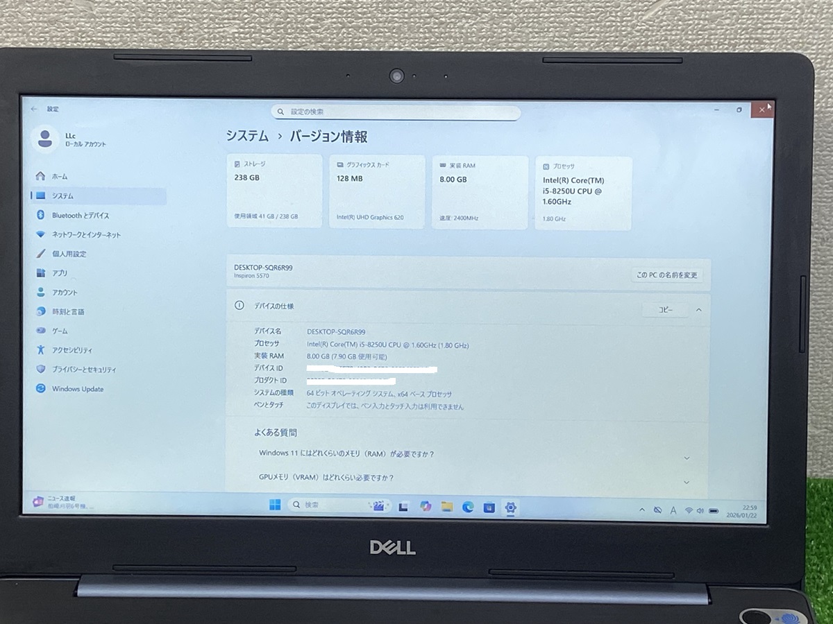 dell inspiron 5570 i5 8th gen laptop Core i5第8世代 ノートPC i5-8250 メモリ8GB SSD256GB デール ノートパソコン中古 15.6 フルHD