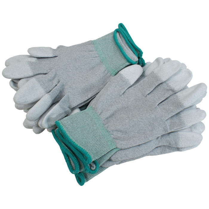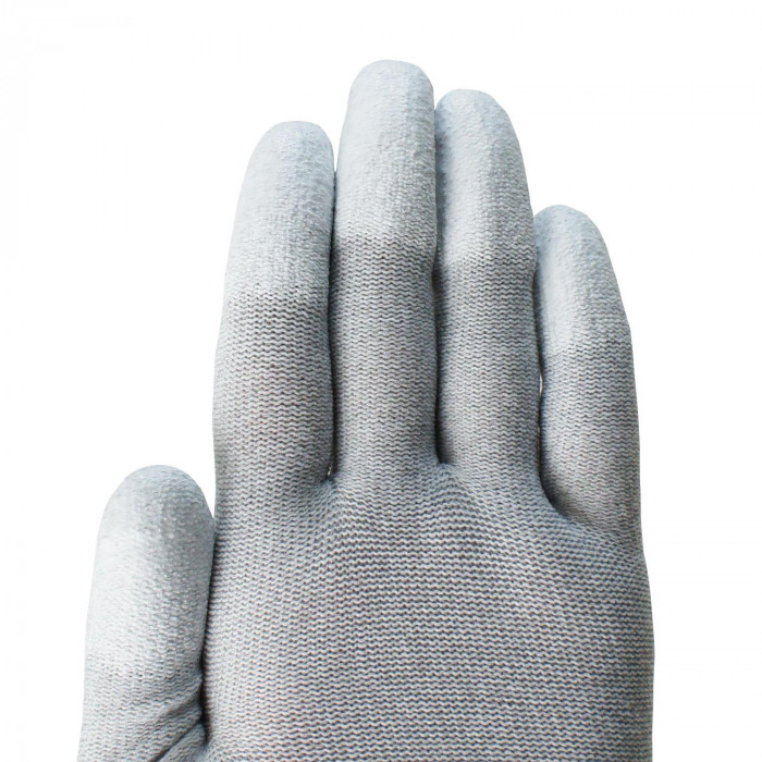 | カーボン糸が縫い込まれた13ゲージのナイロン手袋の指先にポリウレタンをコーティングしました。手首部にほつれを防ぐオーバーロック加工を施しています。工場の部品組み立てなどのライン生産、精密作業におすすめです。ご家庭でもDIYやPC機器などの作業にご利用できます。 |
