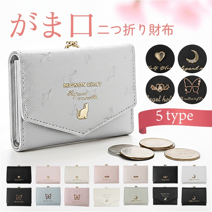 ☆ ビジューバタフライSA ☆ レディースがま口コンパクト財布 がま口財布 二つ折り がまぐち 財布 コンパクト 二つ折り財布 2つ折り財布 收藏