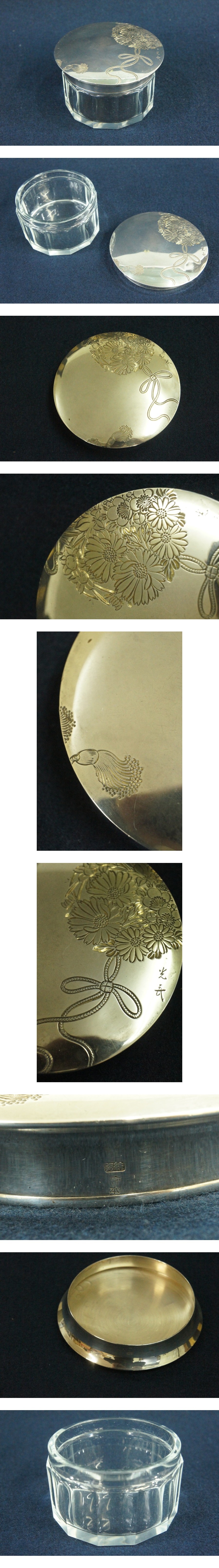 ●純銀蓋ガラス蓋物 宮本製 蓋重量59g 光長菊花彫刻