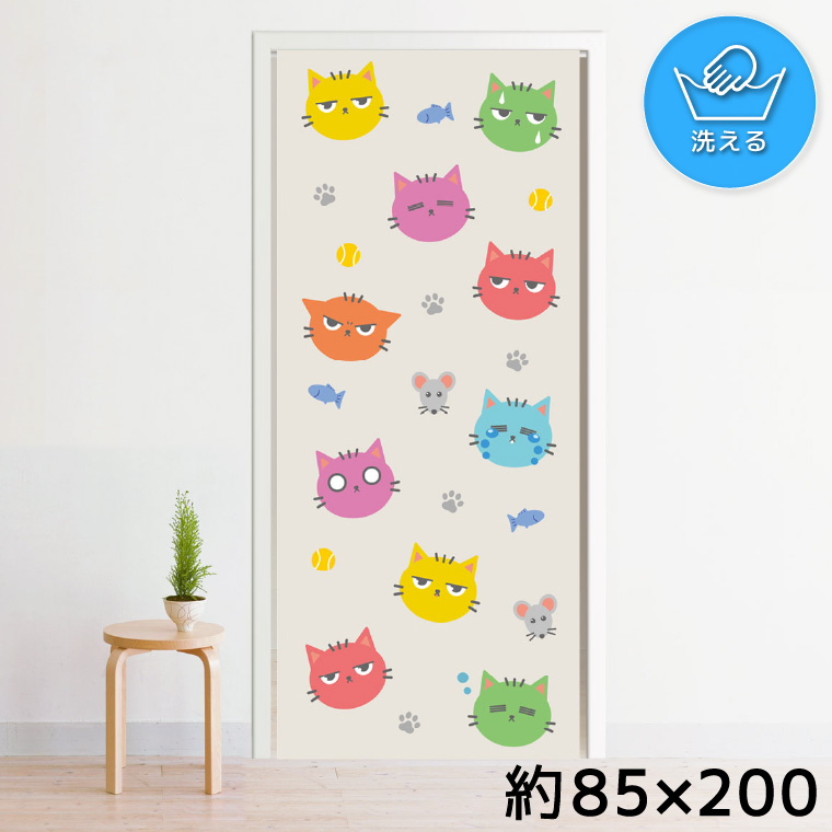のれん ロング 200丈 洗える 目隠し 間仕切り 約85×200cm ミラーレース 転写プリント イラスト NOR-C201 ねこ カラフル ネズミ アニマル 收藏
