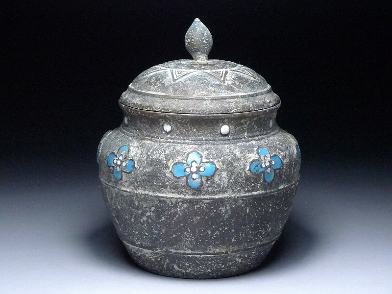 60HT219★中国美術 銅製七宝花文蓋付壺? 香炉 香立 蓋物 アンティーク 收藏