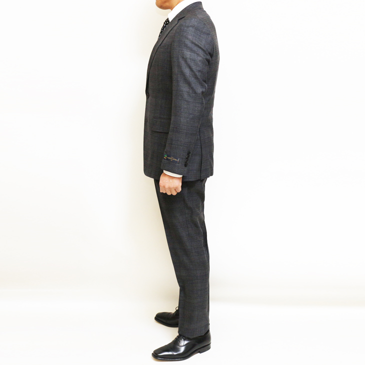2026春夏モデル 新作 新品 Lanificio di pray 灰グレー杢チェック 2つボタン ビジネス スーツ (スリム型)AB5 收藏